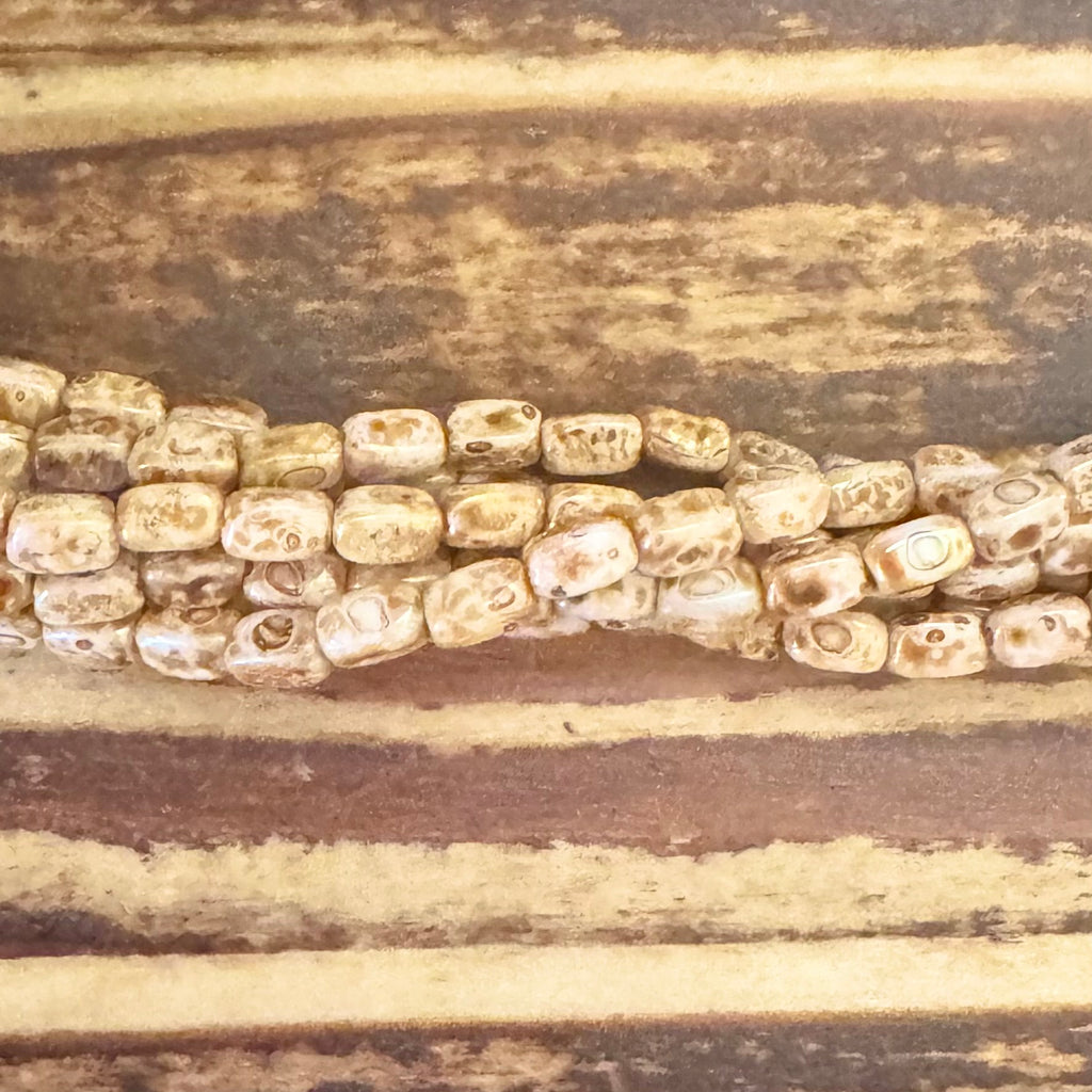 JKB-1231 - Czech Glass Rectangle Beads, Caramel Picasso, 3x5mm | Strand