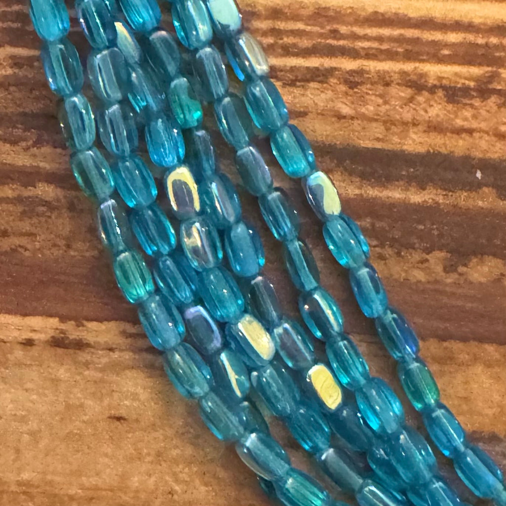 JKB-1234 - Czech Glass Rectangle Beads, Aqua AB, 4x6mm | Strand