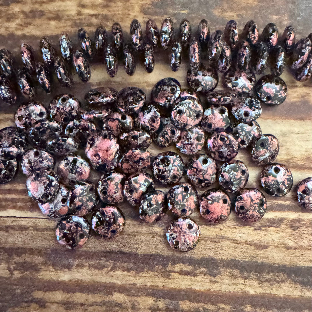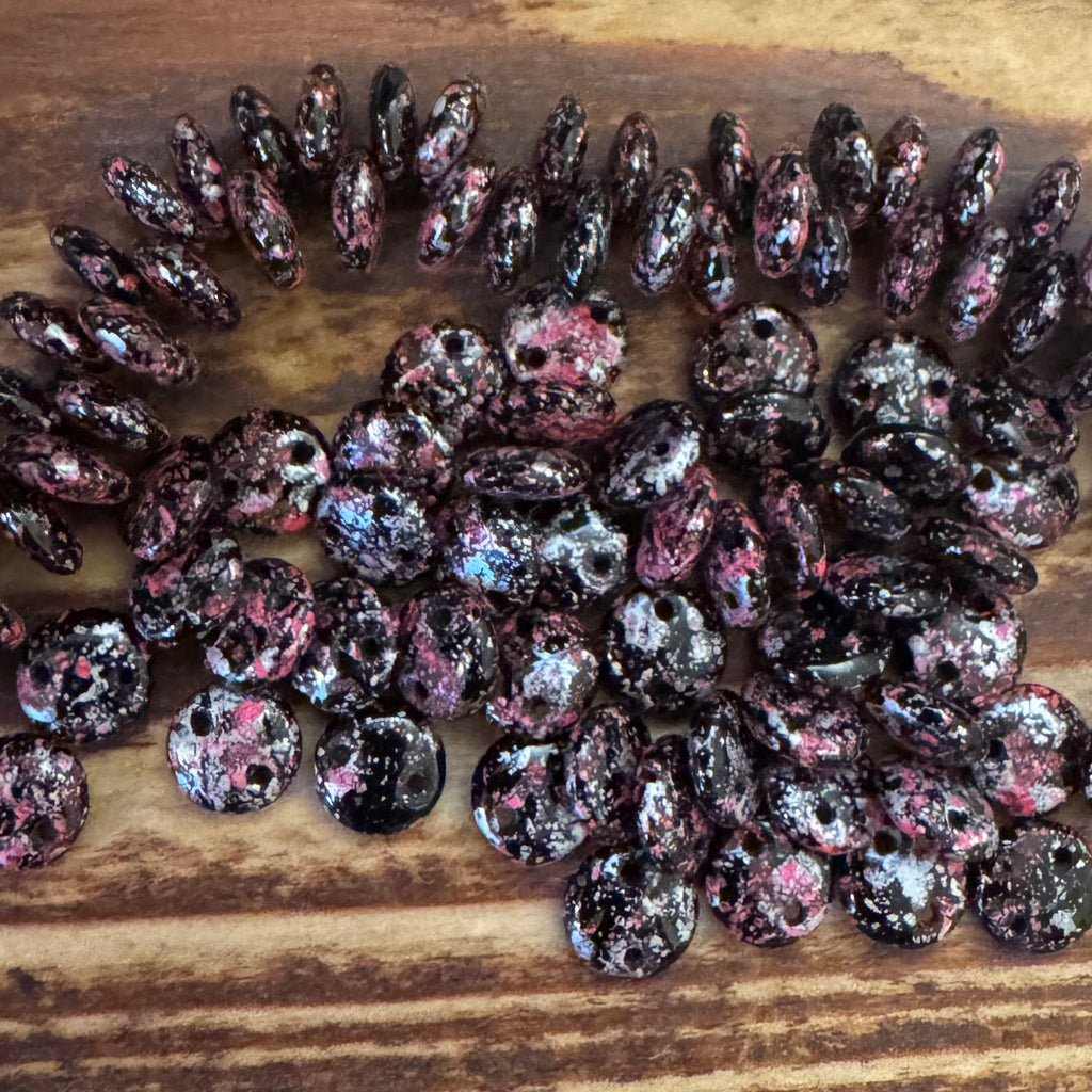 JKB-1237 - Czech Glass 2 Hole Beads, Jet/Pink Splash, 6mm | Strand