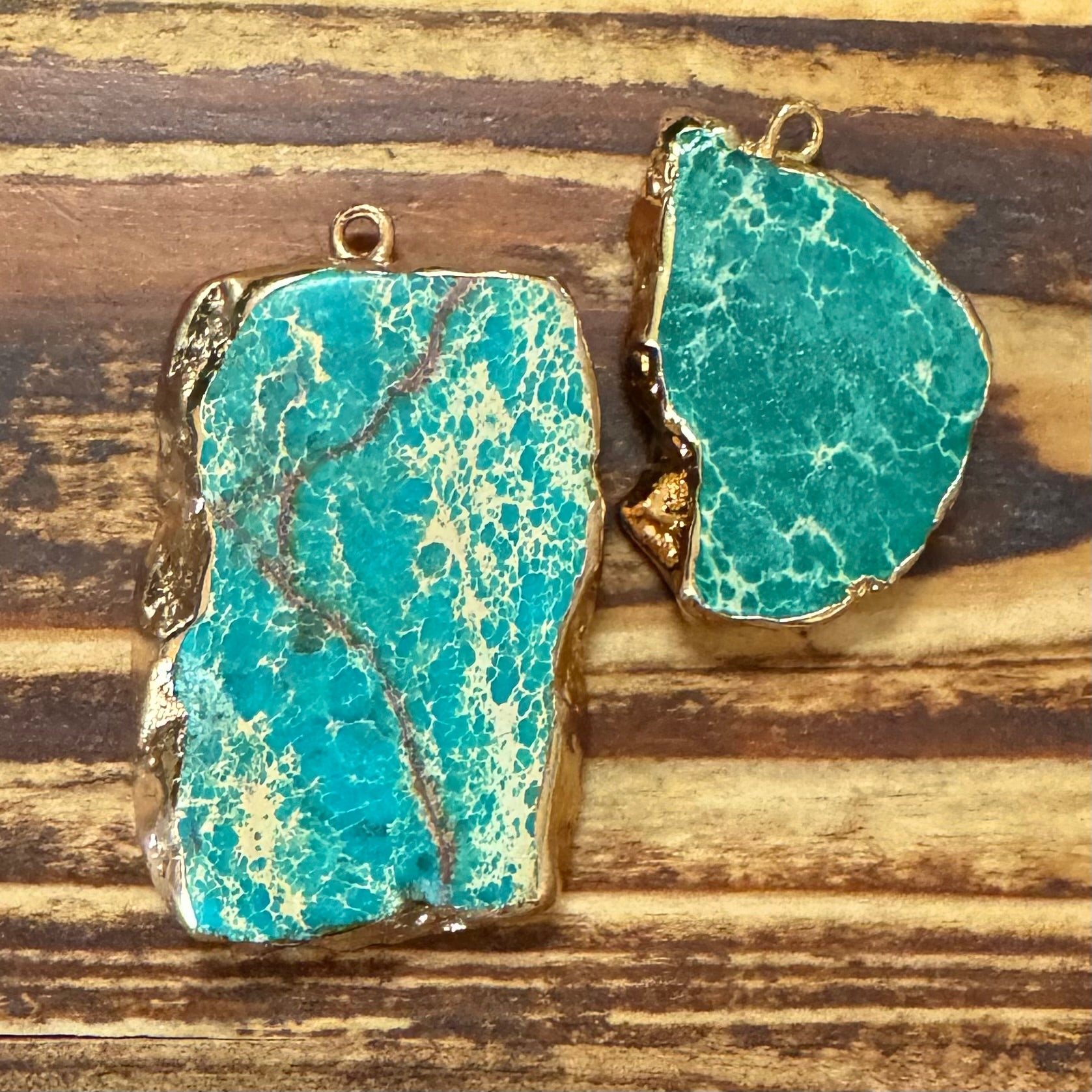 BCB-1490 - Impression Jasper Gold Tone Free Form Pendant, 40x30x5~60x35x5mm | Pkg 1