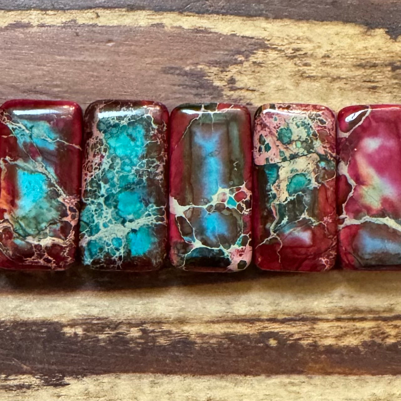 ABA-1139 - Double Drilled Variscite Gemstone Strand, Turquoise/Merlot, 10x20mm | Strand