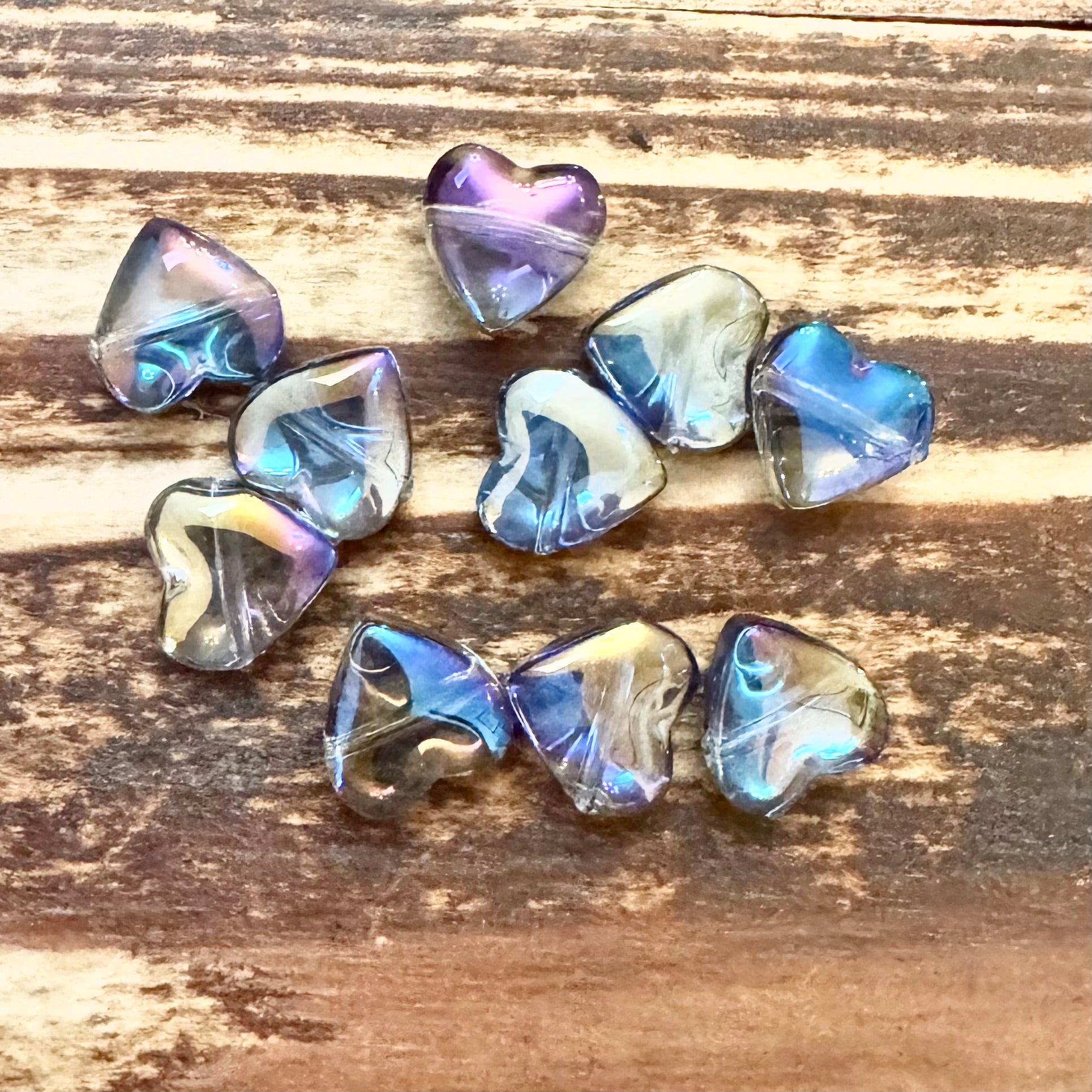 BCB-1414 - Heart Glass Beads, Irridescent Blue, 10mm | Pkg Approx. 10