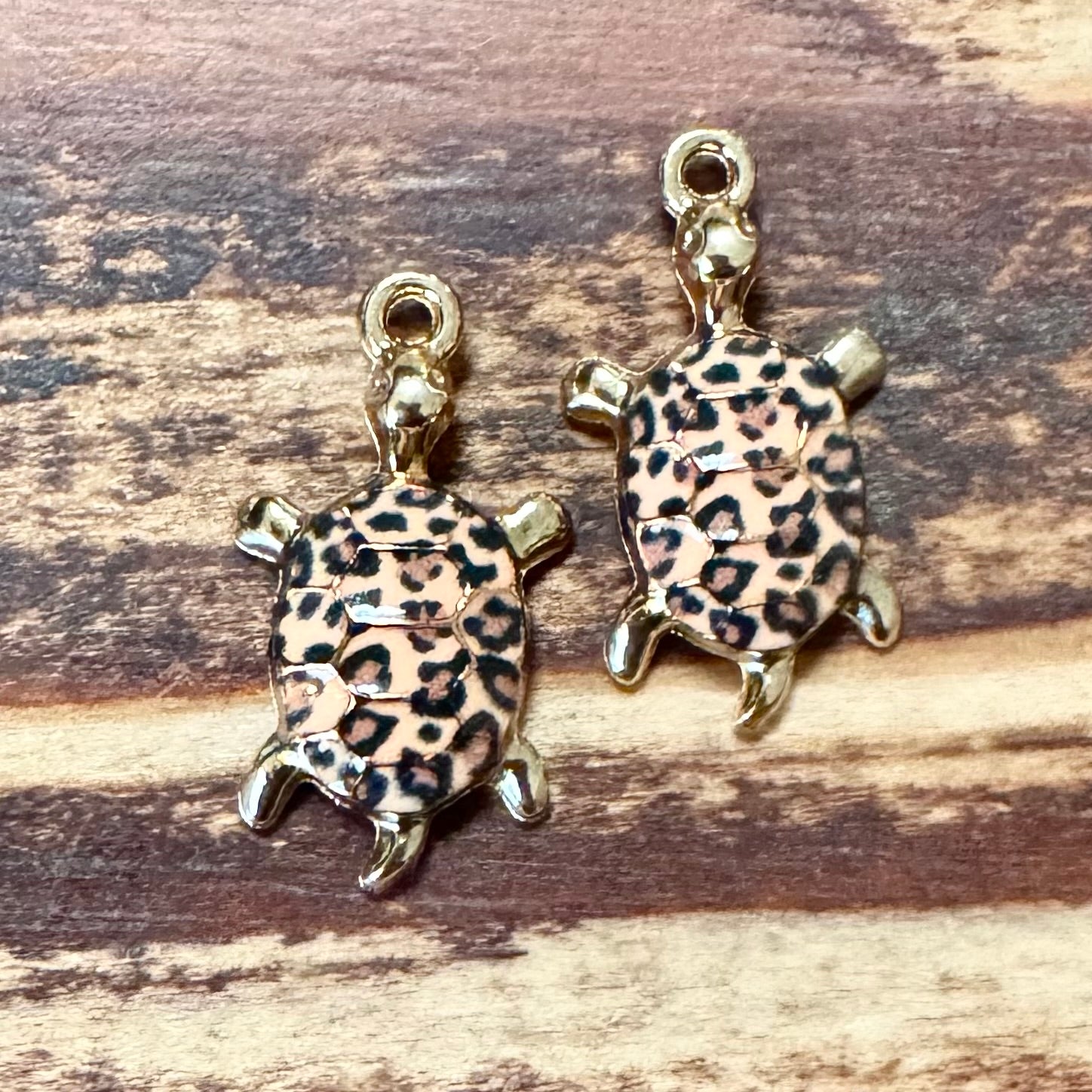 BCB-1355 - Antique Gold Sea Turtle Pendant With Enamel, Animal Print, 13x24mm | Pkg 2