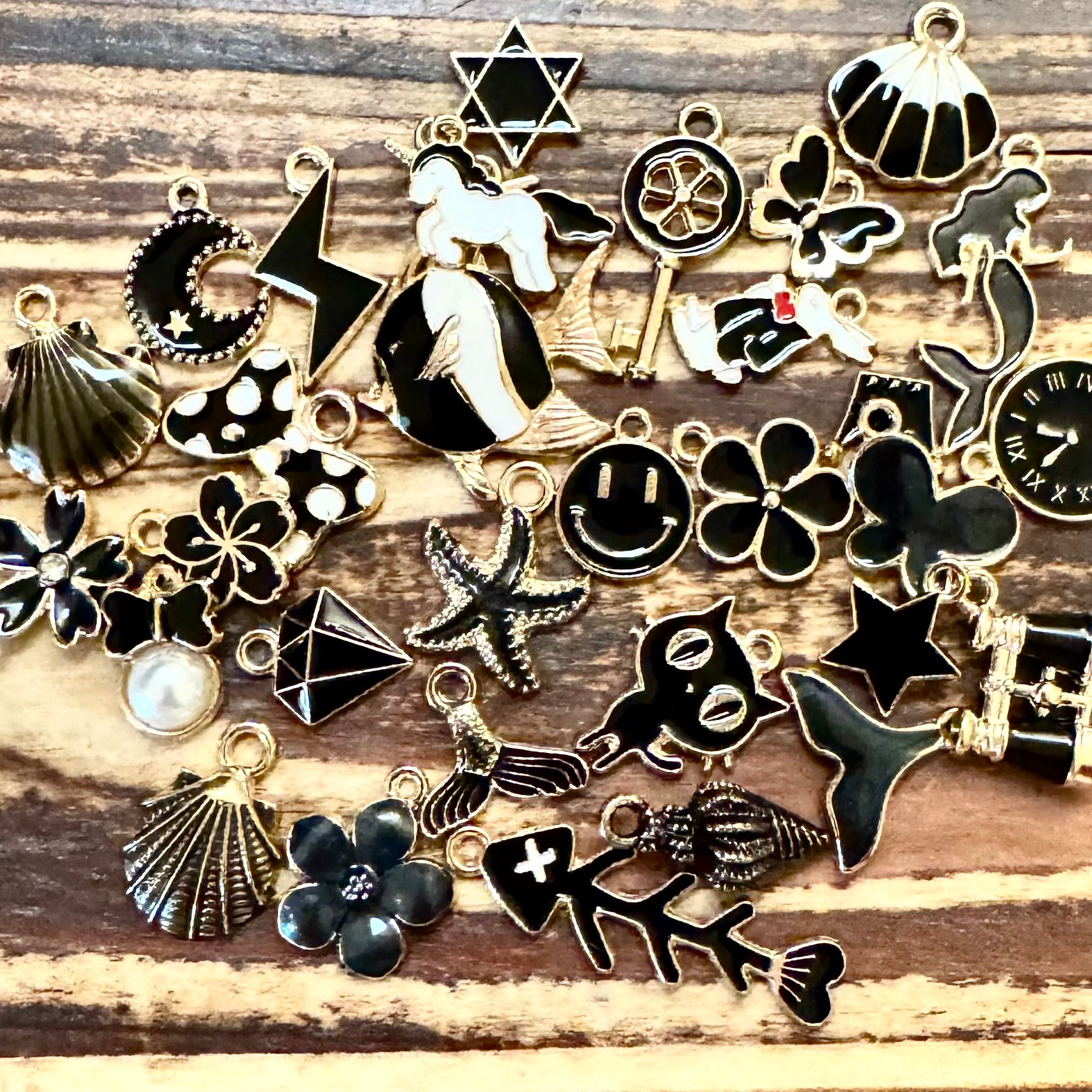 BCB-1285 - Gold Plated Enamel Pendants, Black And White | 31 Pc