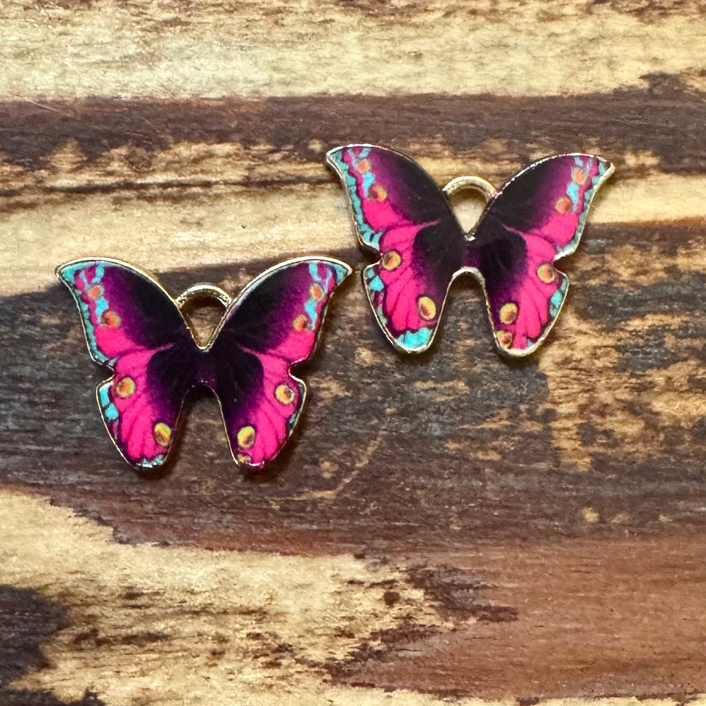 BCB-1239 - Antique Gold Butterfly Pendant With Enamel, Fuschia, 13x24mm | Pkg 2
