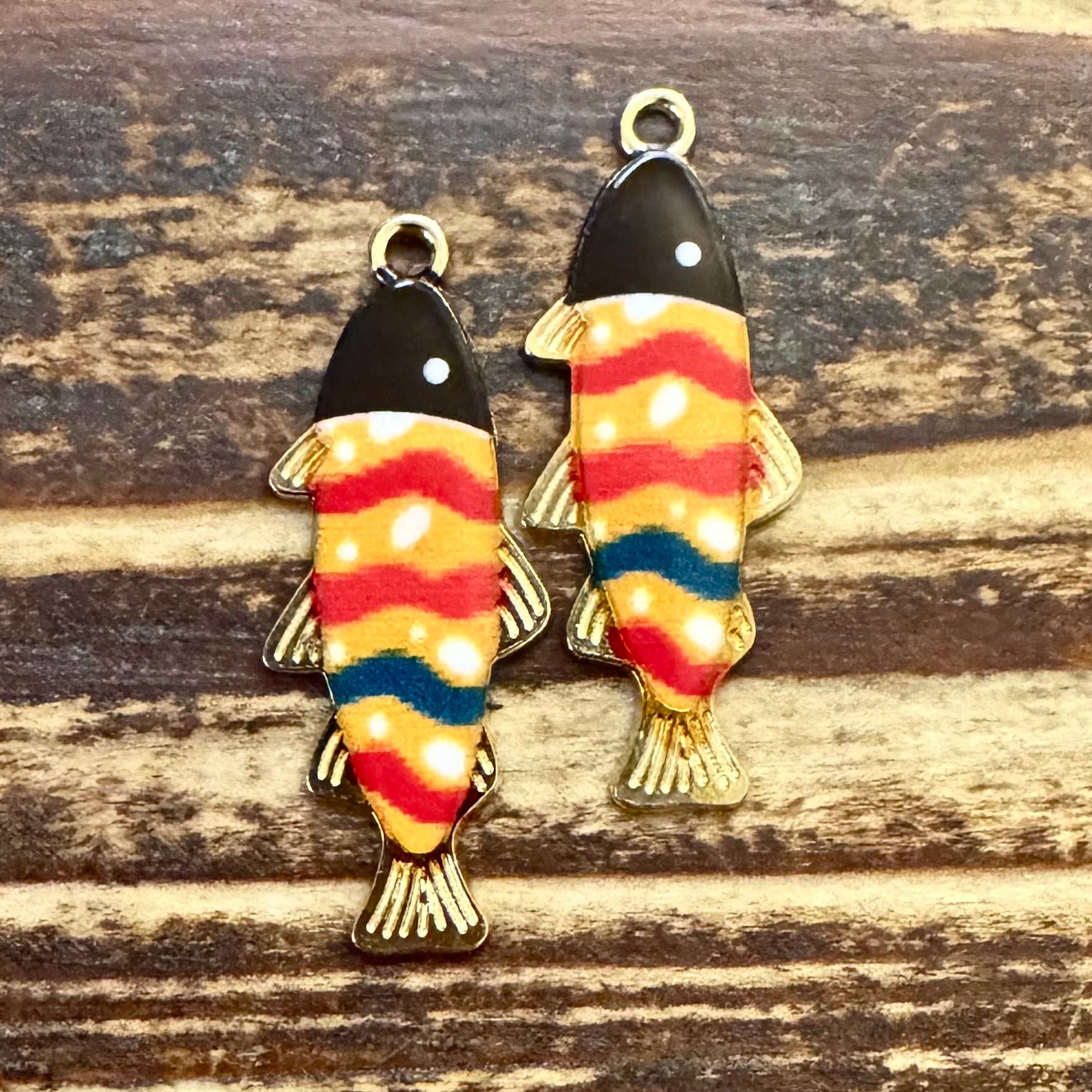 BCB-0924 - Antique Gold Fish Pendant With Enamel, Red/Orange Stripes, 14x36mm | Pkg 2