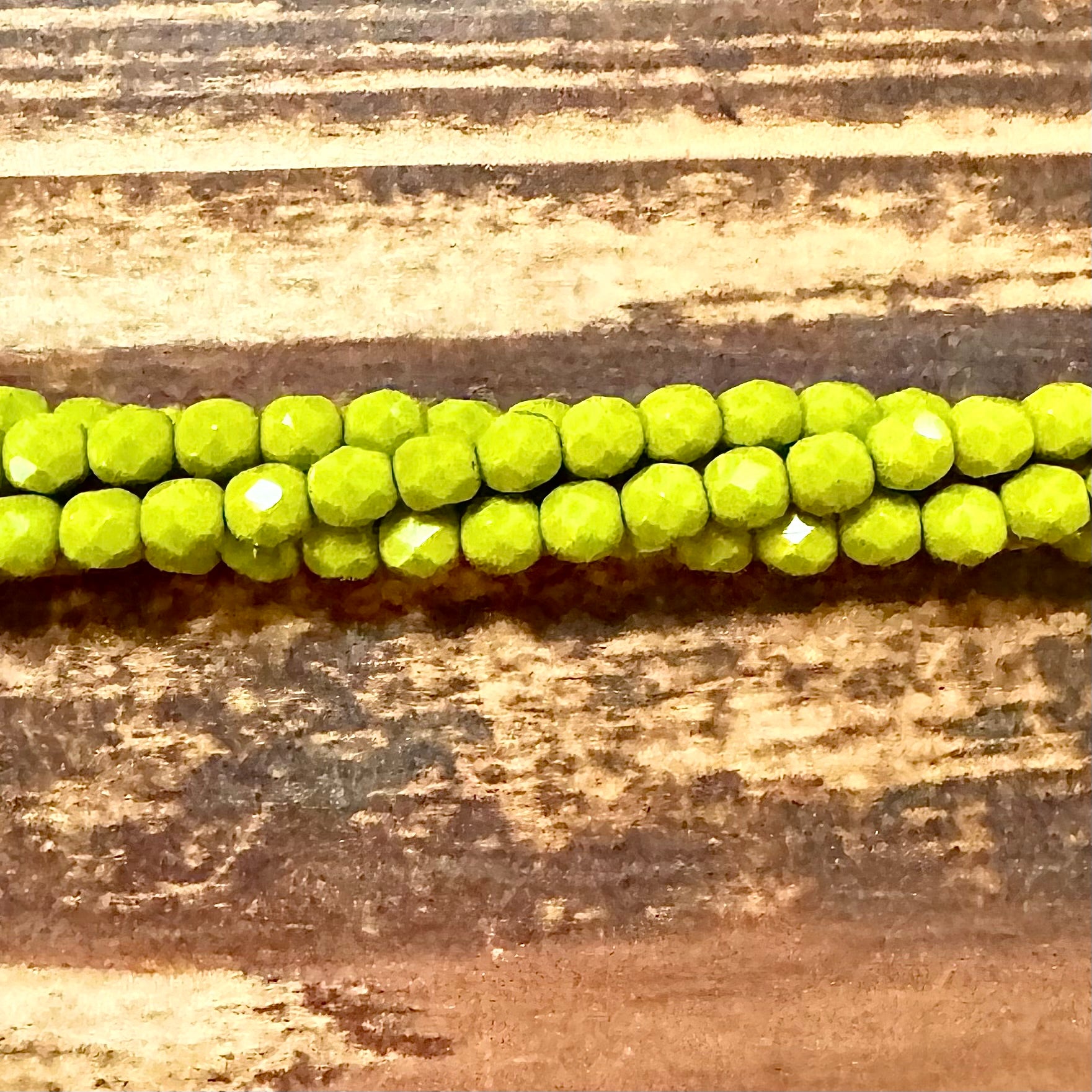 JKB-0897 - Czech Glass Fire Polish Beads, Avacado, 4mm | Strand