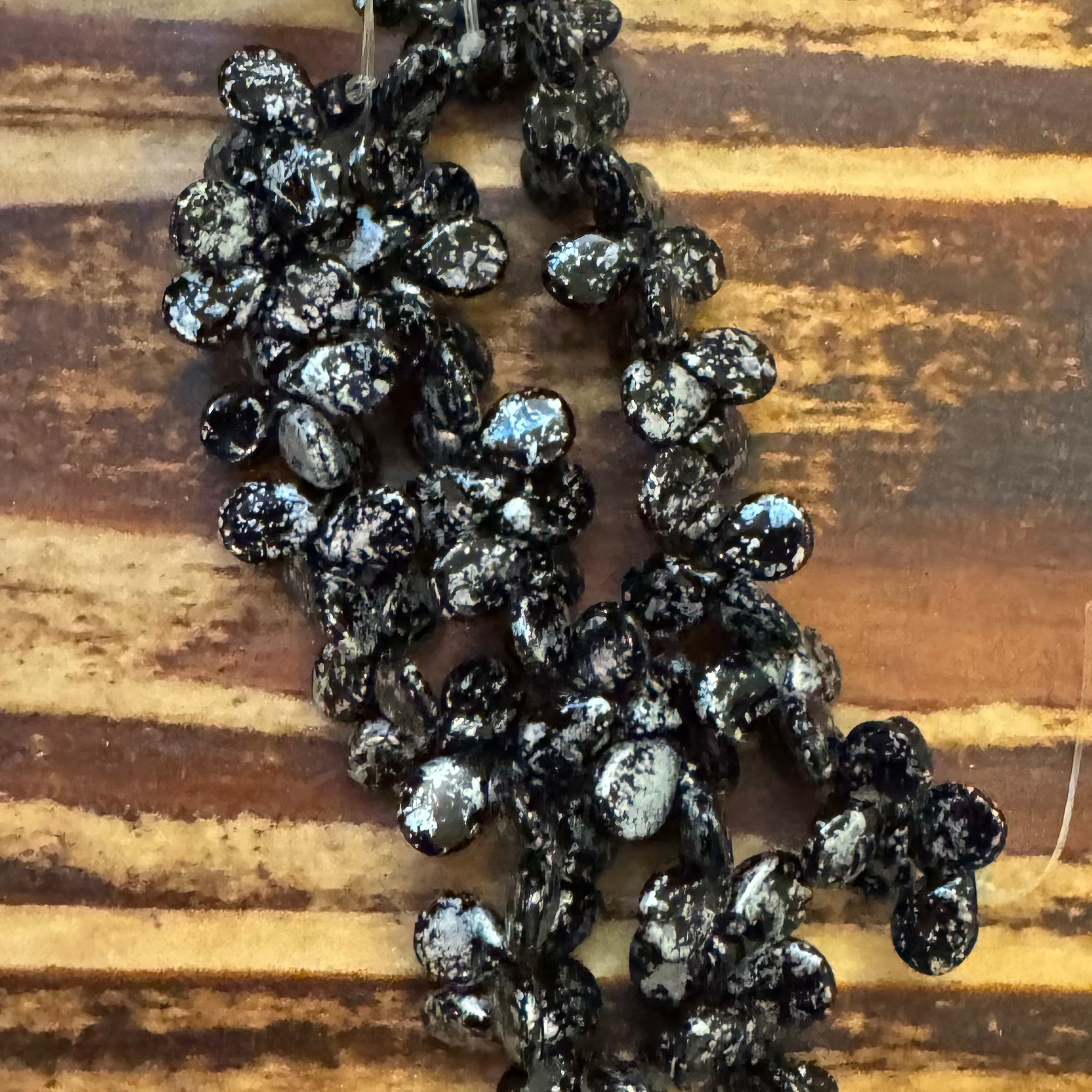 JKB-1048 - Czech Glass Teardrop Beads, Jet Silver Splash, 6mm | Strand