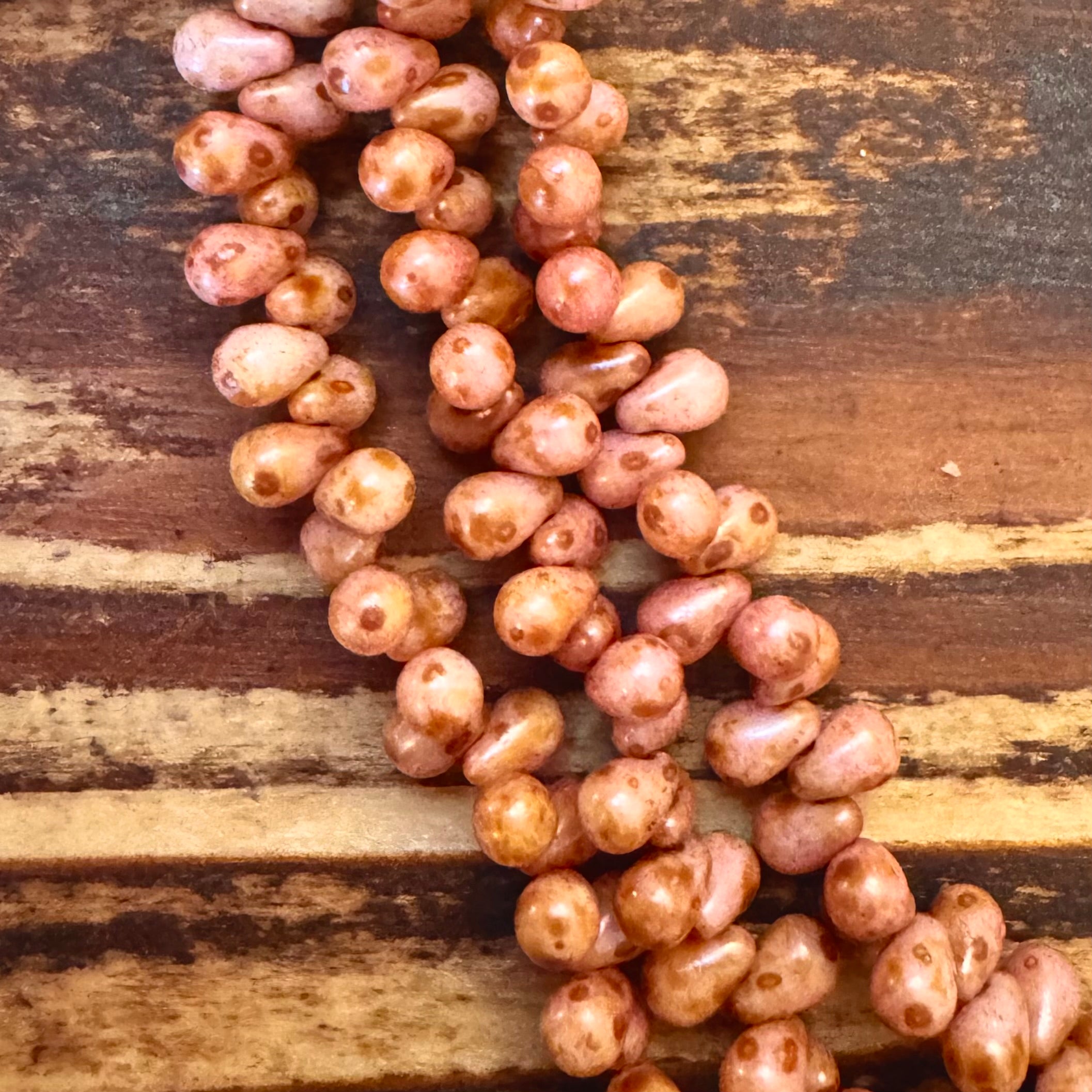 JKB-1050 - Czech Glass Teardrop Beads, Rose Picasso, 4x7mm | Strand