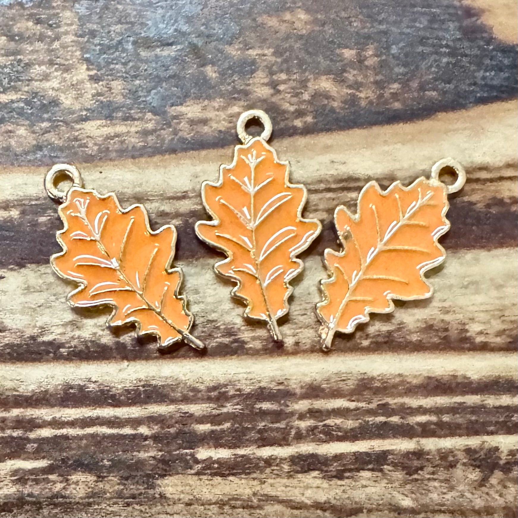 BCB-1160 - Antique Gold Enamel Leaf Pendant, Tangerine, 23x12mm | Pkg 3