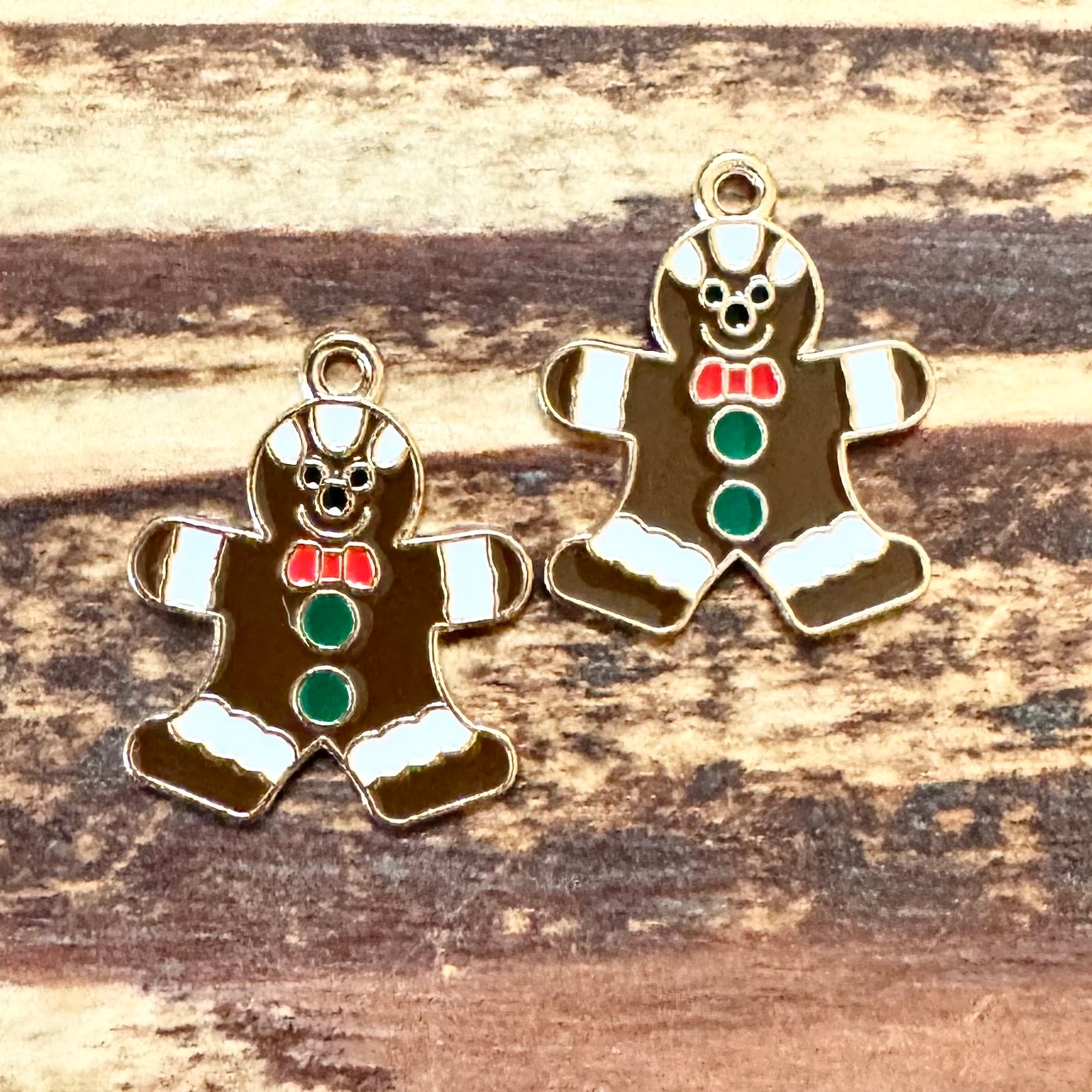 BCB-1276 - Gold Plated Enamel Pendant, Gingerbread Man, 18x21mm | Pkg 2