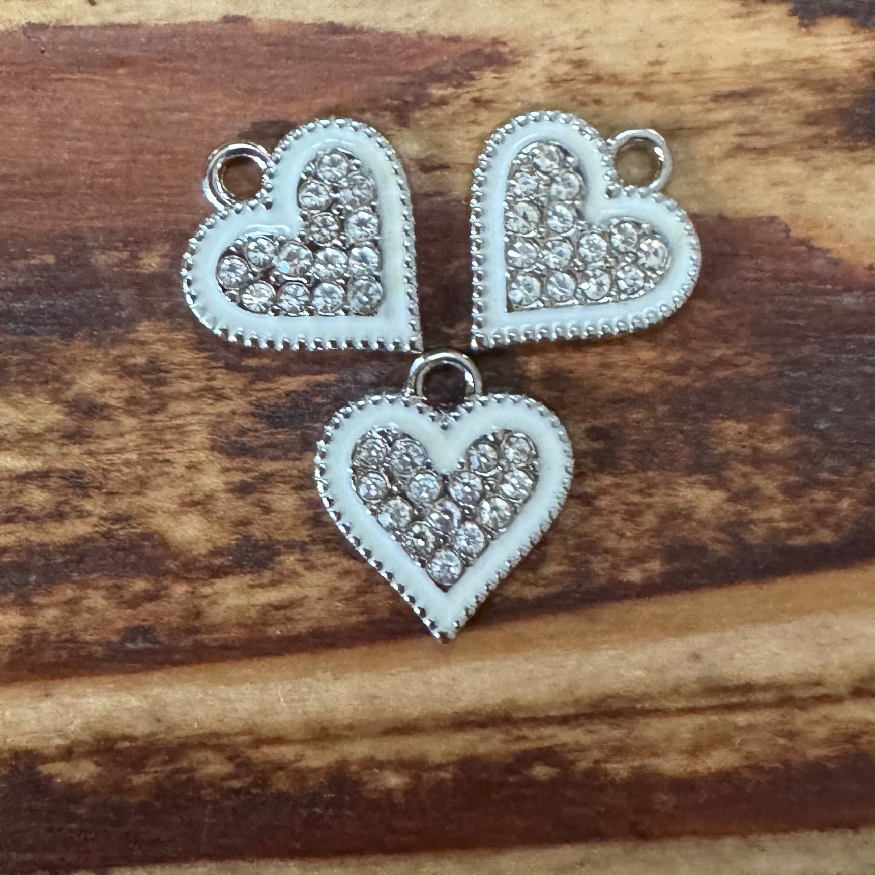 BCB-1634 - Silver Enamel Charms With Heart And Crystals, White, 13x15mm | Pkg 3