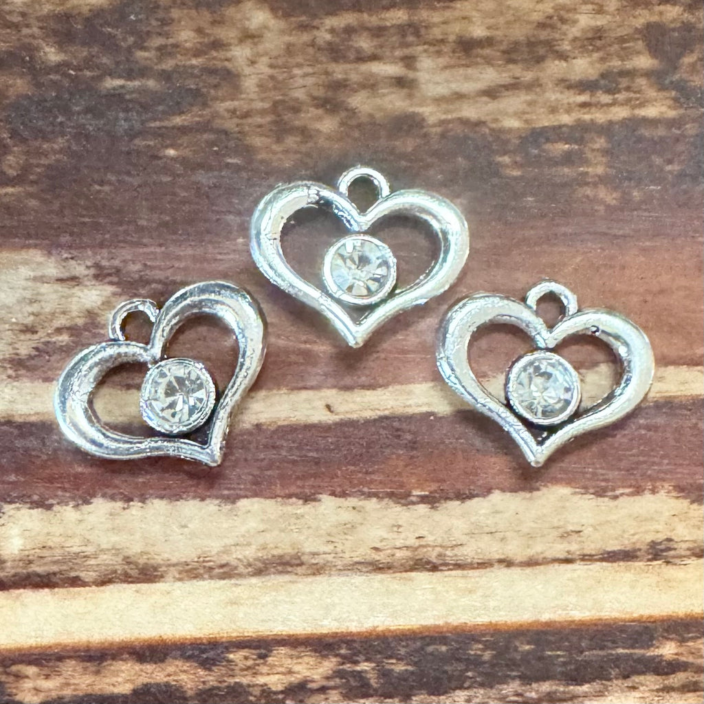 BCB-1591 - Antique Silver Heart With Crystal Charm, 13x16mm | Pkg 3