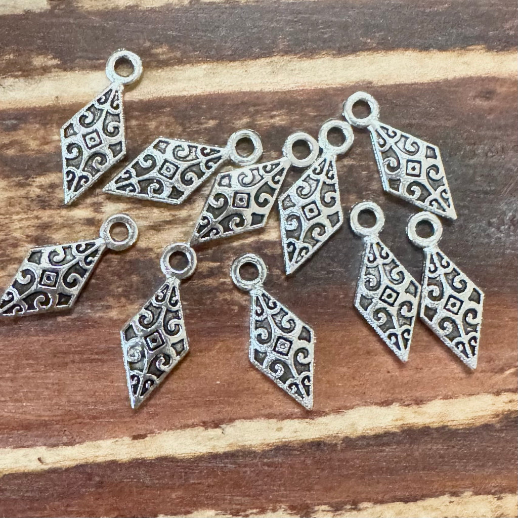 BCB-1592 - Antique Silver Diamond Shaped Charms, 7x16mm | Pkg 10