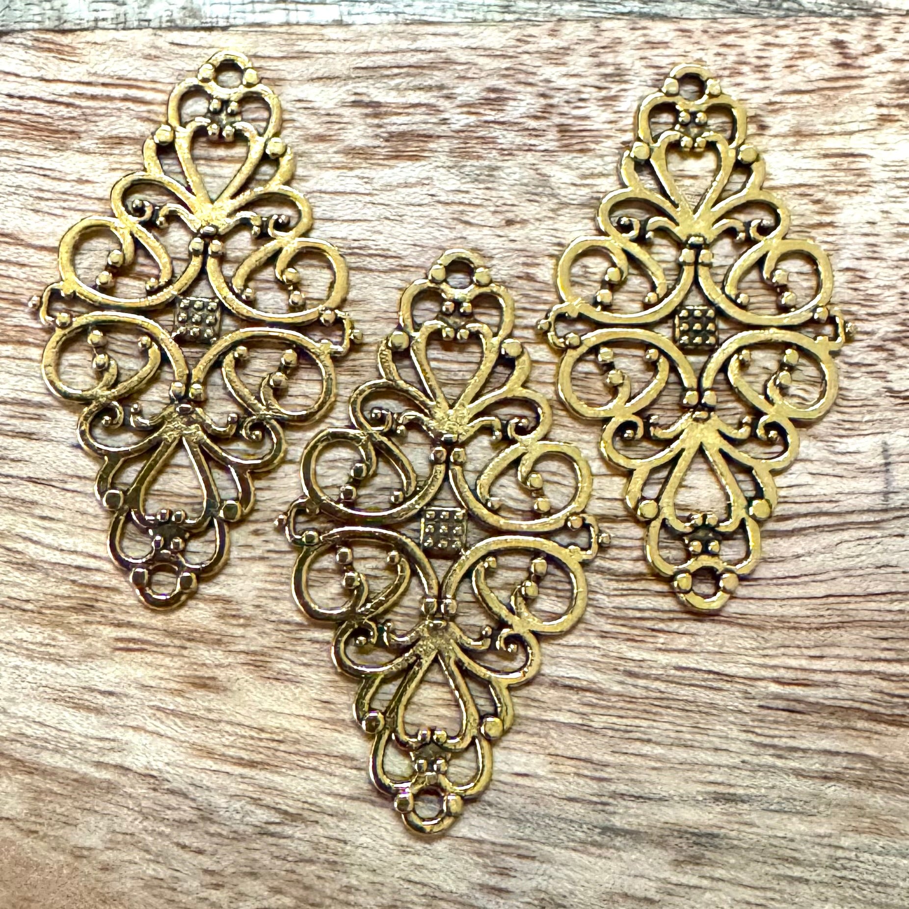 BCB-2302 - Antique Gold Curled And Dotted Connectors, 25x42mm | Pkg 3
