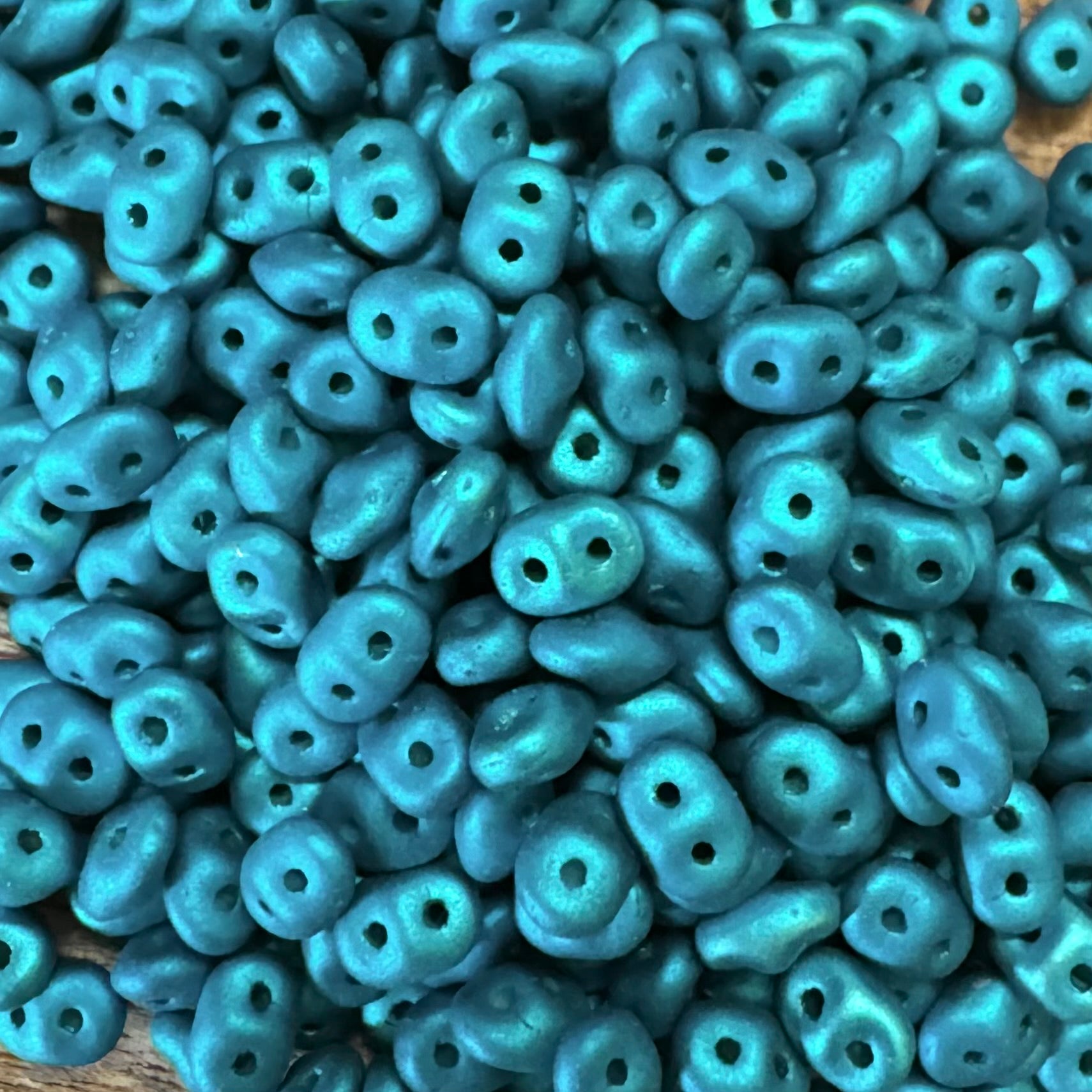 DU0523980-24306 - Czech Glass Metalust Matte Super Duos, Turquoise, sold as a 25 gram economy package. Made by Matubo in Czech Republic, the originator of the SuperDuo. Package contains about 337 beads.