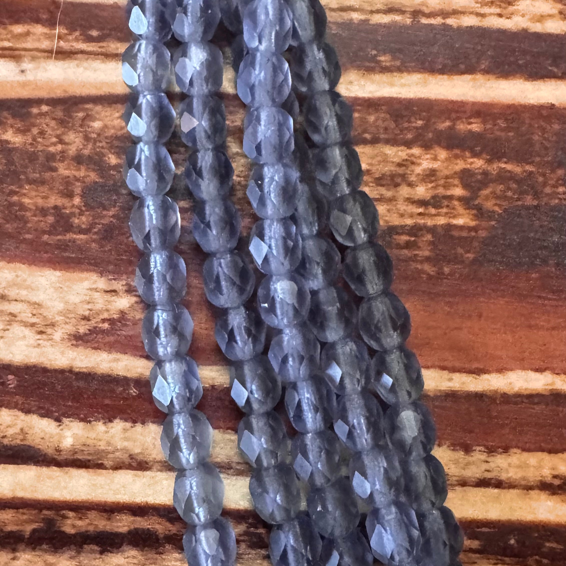 JKB-1240 - Czech Glass Fire Polish Beads, Matte Tanzanite, 6mm | Strand