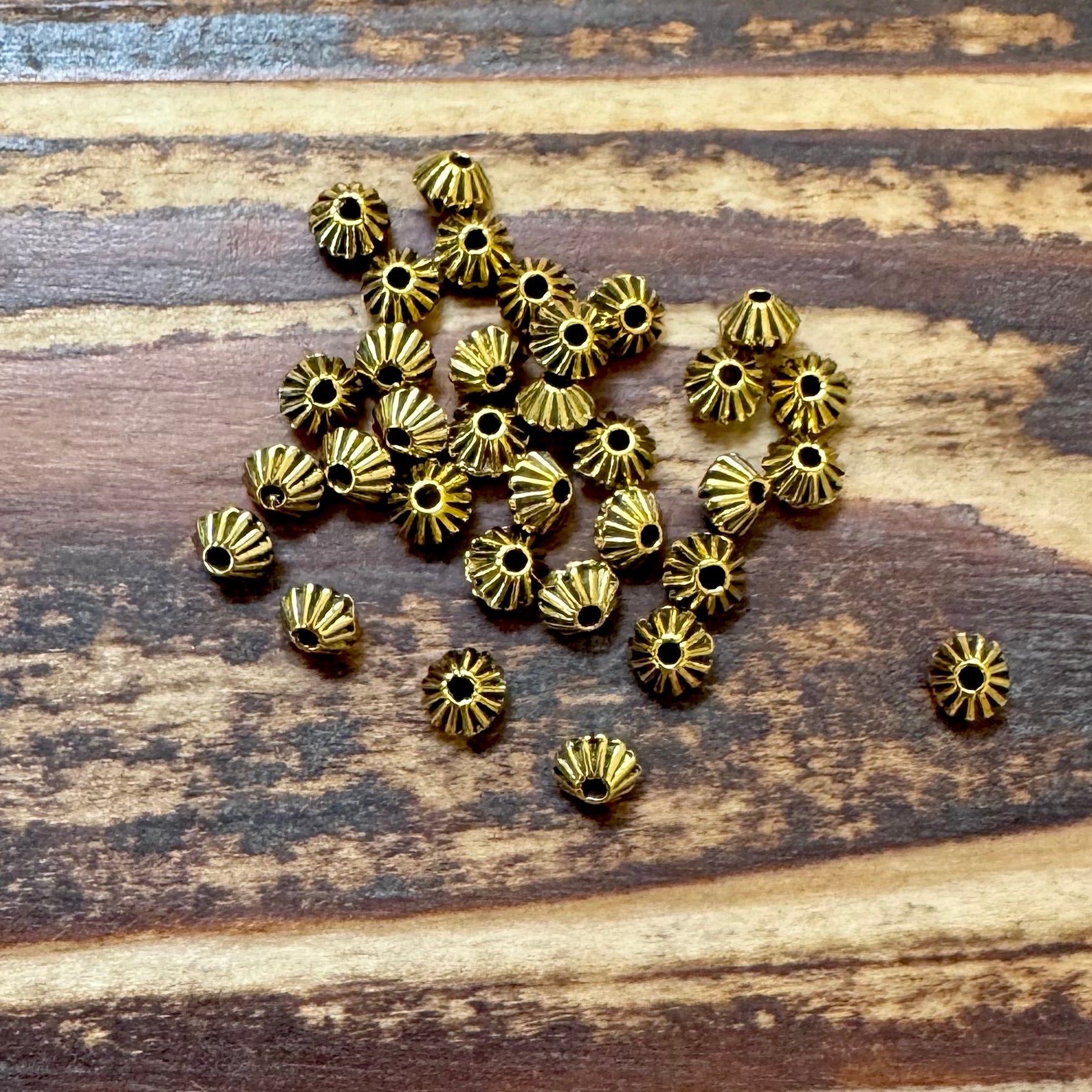 ABA-1158 - Antique Gold Fluted Spacer Beads, 3x4mm | Pkg 20