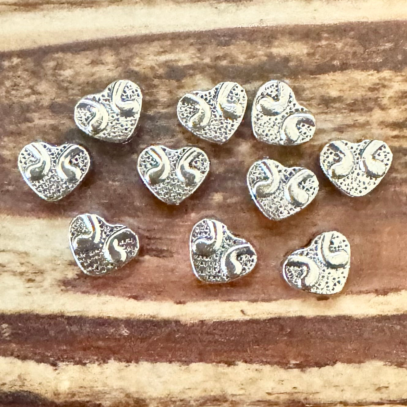 BCB-1582 - Antique Silver Hammered Heart Beads With Swirl, 8x9mm | Pkg 10
