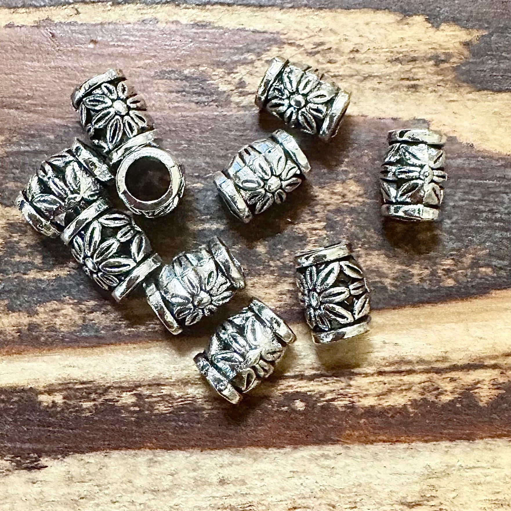 BCB-0940 - Antique Silver Flower Tube Beads, 9x7mm | Pkg 10