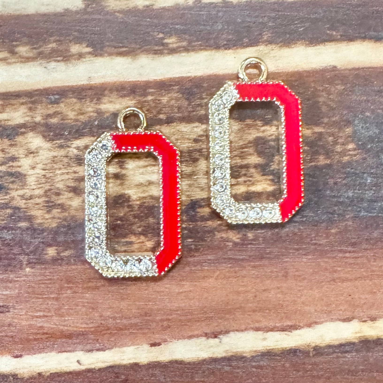 BCB-1596 - Antique Gold Enamel Rectangle Pendant With Crystals, Red, 12x21mm | Pkg 2