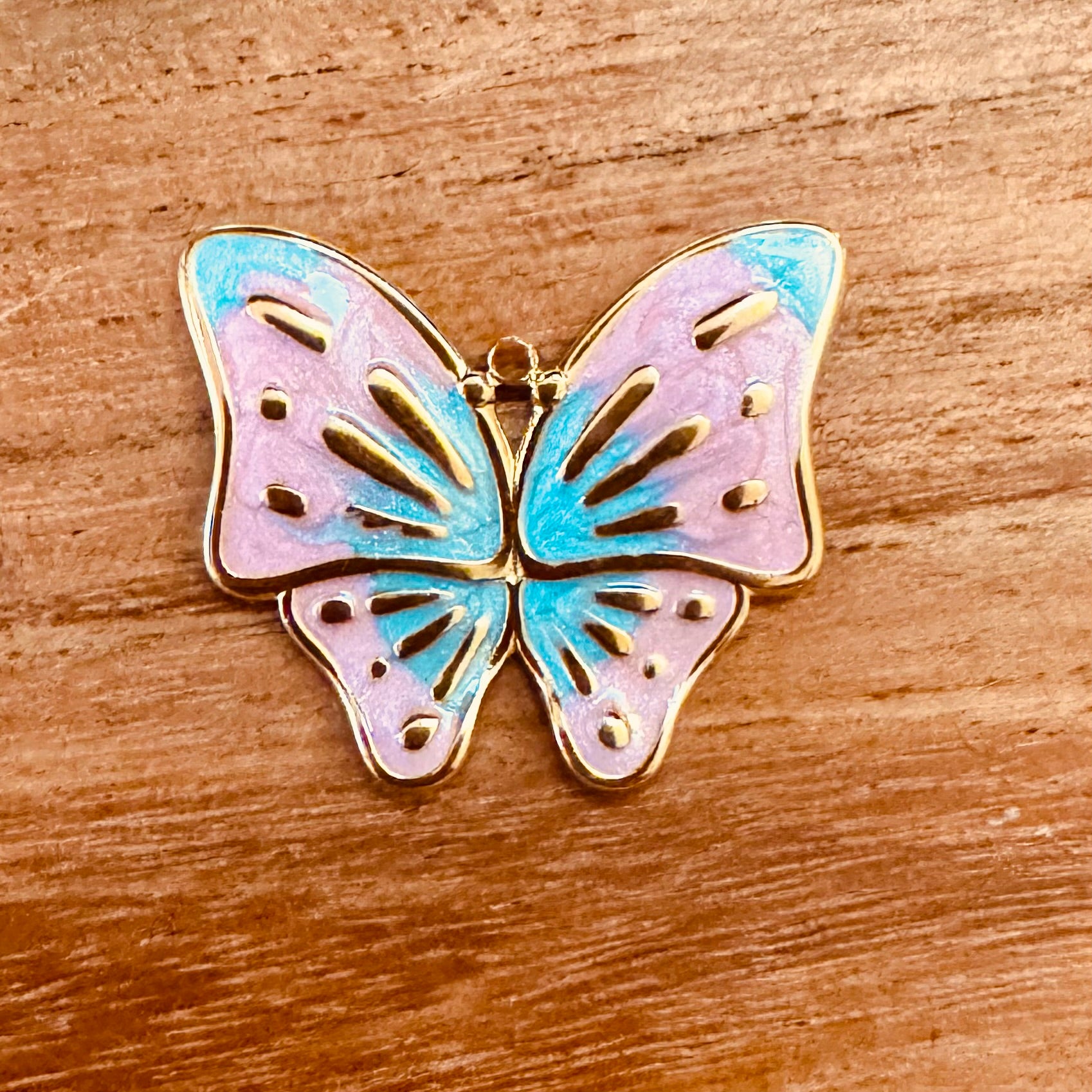 BCB-2109 - Gold Stainless Steel Butterfly Pendant, Pink/Blue, 25x30mm | Pkg 1