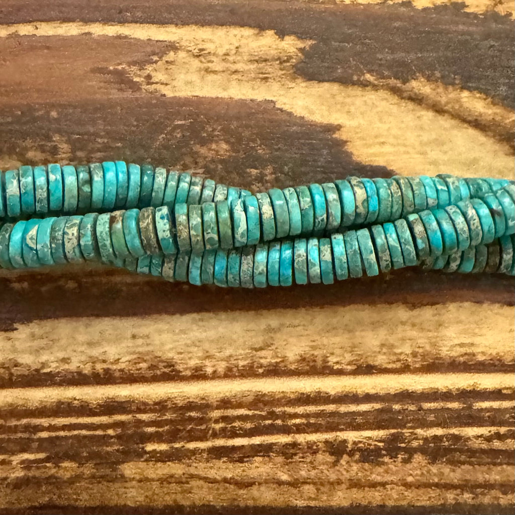 ABA-1173 - Magnesite Heishi Gemstone Bead Strand, Turquoise, 2x6mm | Strand