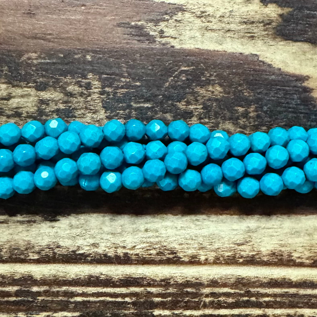 ABA-1176 - Magnesite Faceted Round Gemstone Beads, Turquoise Blue, 4mm | Strand