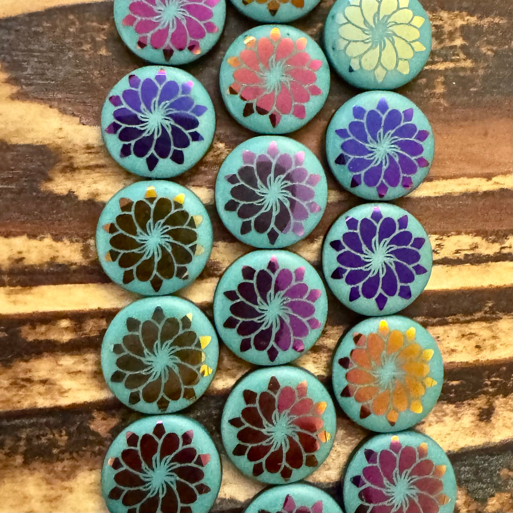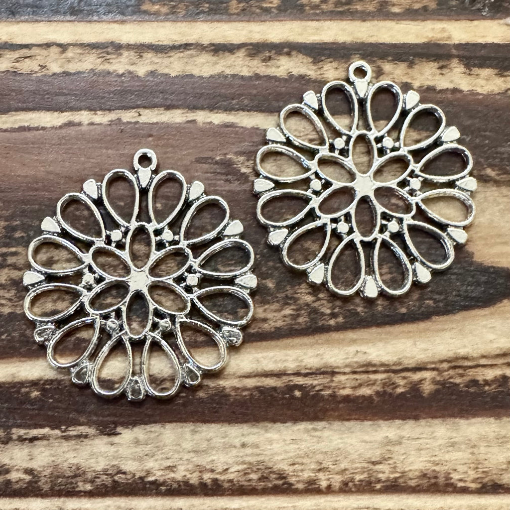 BCB-1583 - Antique Silver Coin Beads With Center Flower, 10mm | Pkg 10