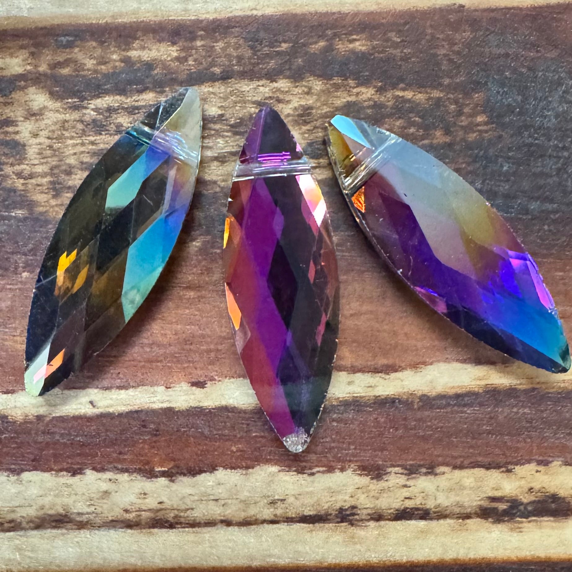 BCB-1503 - Faceted Crystal Pendant, 10x30mm, Rose Purple Green | Pkg 3