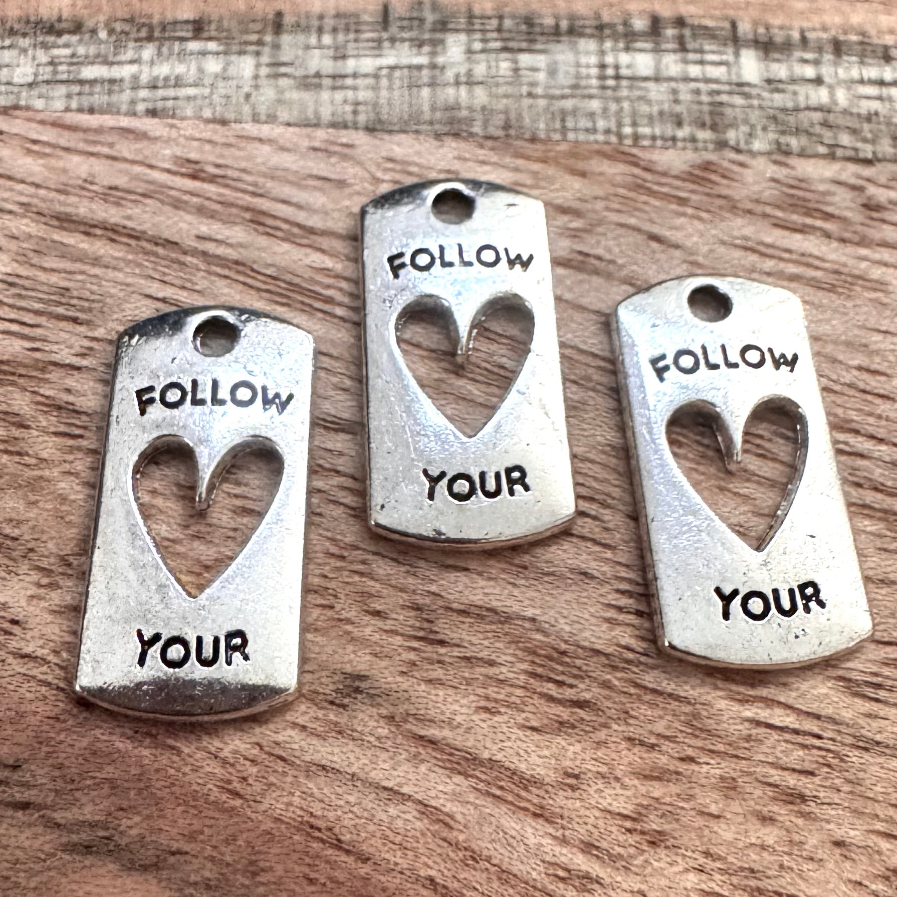 BCB-2033 - Antique Silver Pendant With Cut Out Heart, "Follow Your Heart", 10x20mm | Pkg 3