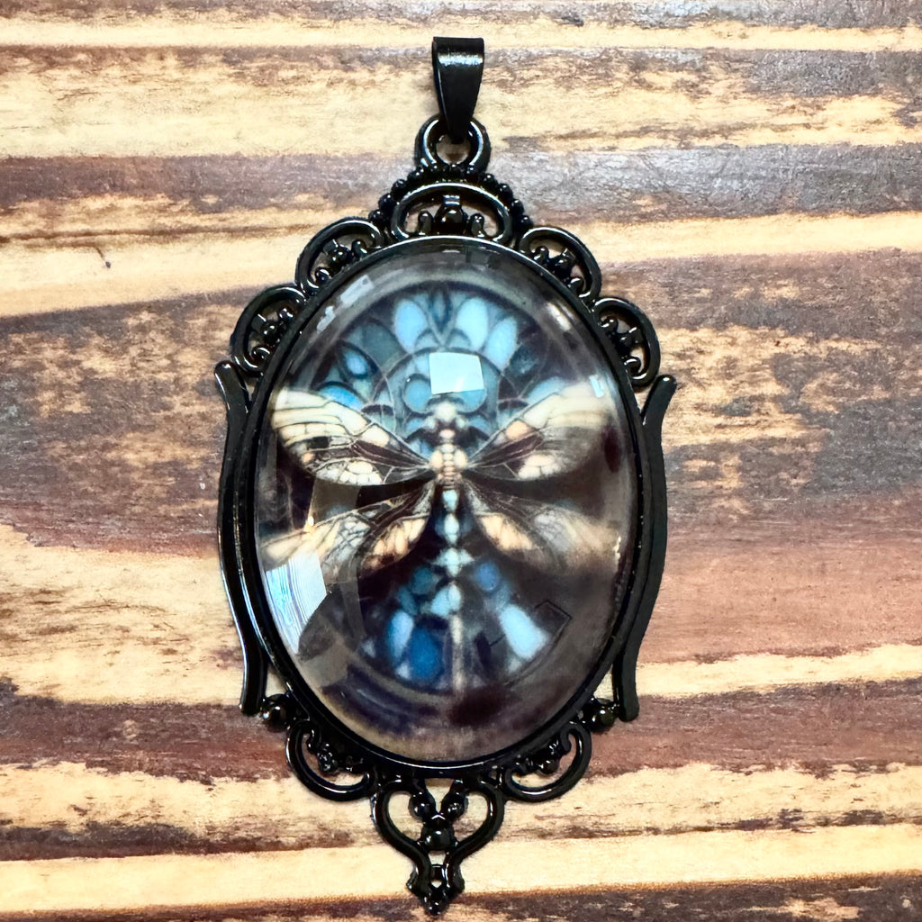 BCB-1481 - Black Enamel Oval Pendant, Dragonfly, 36x70mm | Pkg 1