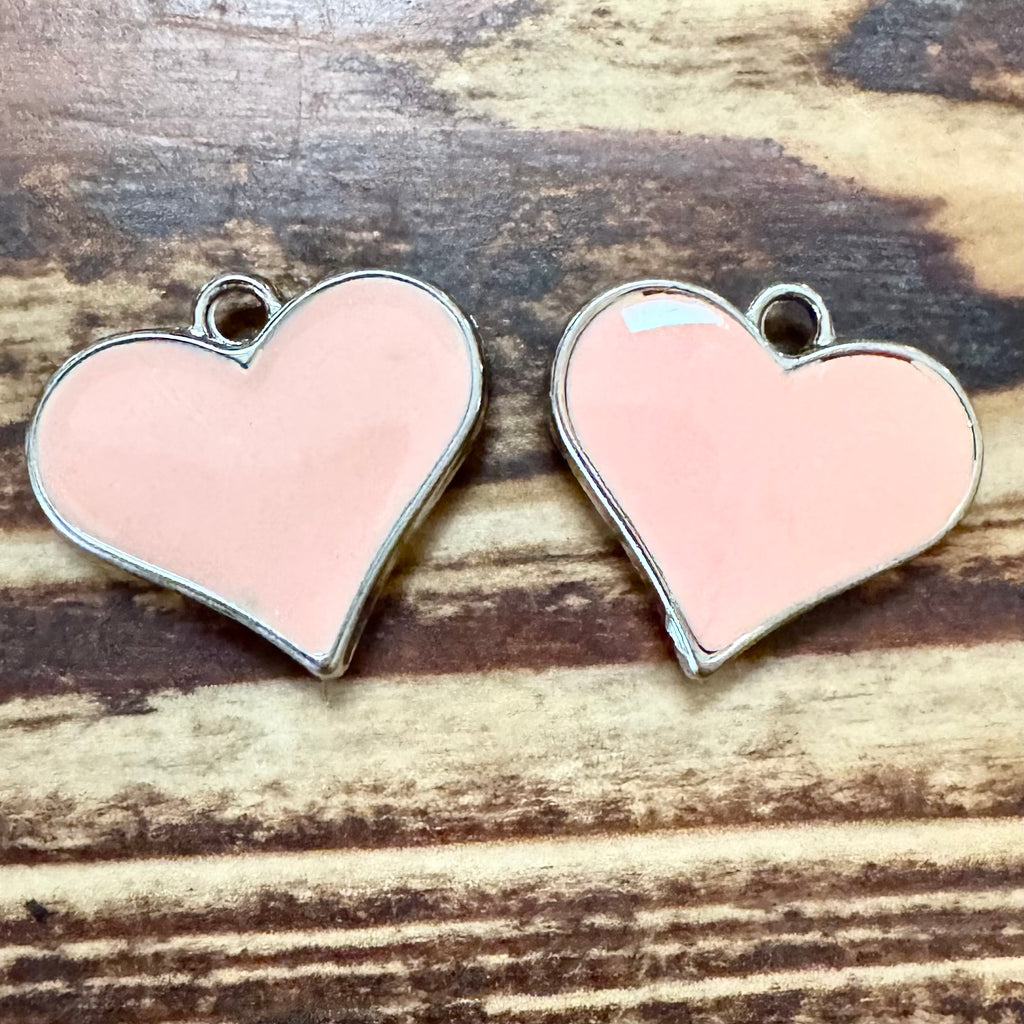 BCB-1484 - Silver Enamel Double Sided Heart Pendant, Soft Pink, 23x26 | Pkg 2