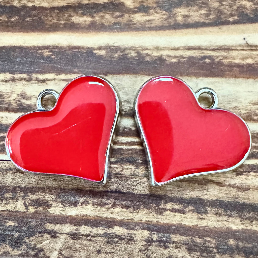 BCB-1485 - Silver Enamel Double Sided Heart Pendant, Very Red, 23x26 | Pkg 2