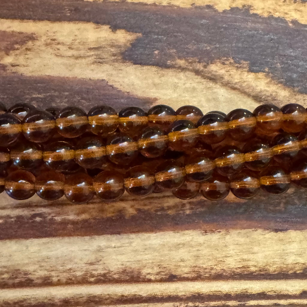 JKB-1154 - Czech Glass Round Beads, Dark Topaz, 6mm | Strand