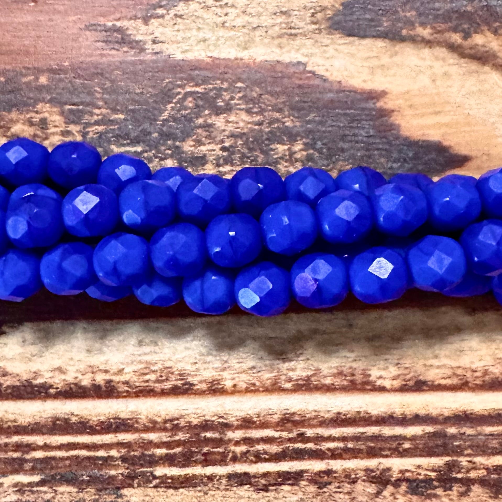 JKB-0951 - Czech Glass Fire Polish Beads, Opapue Sapphire, 6mm | Strand