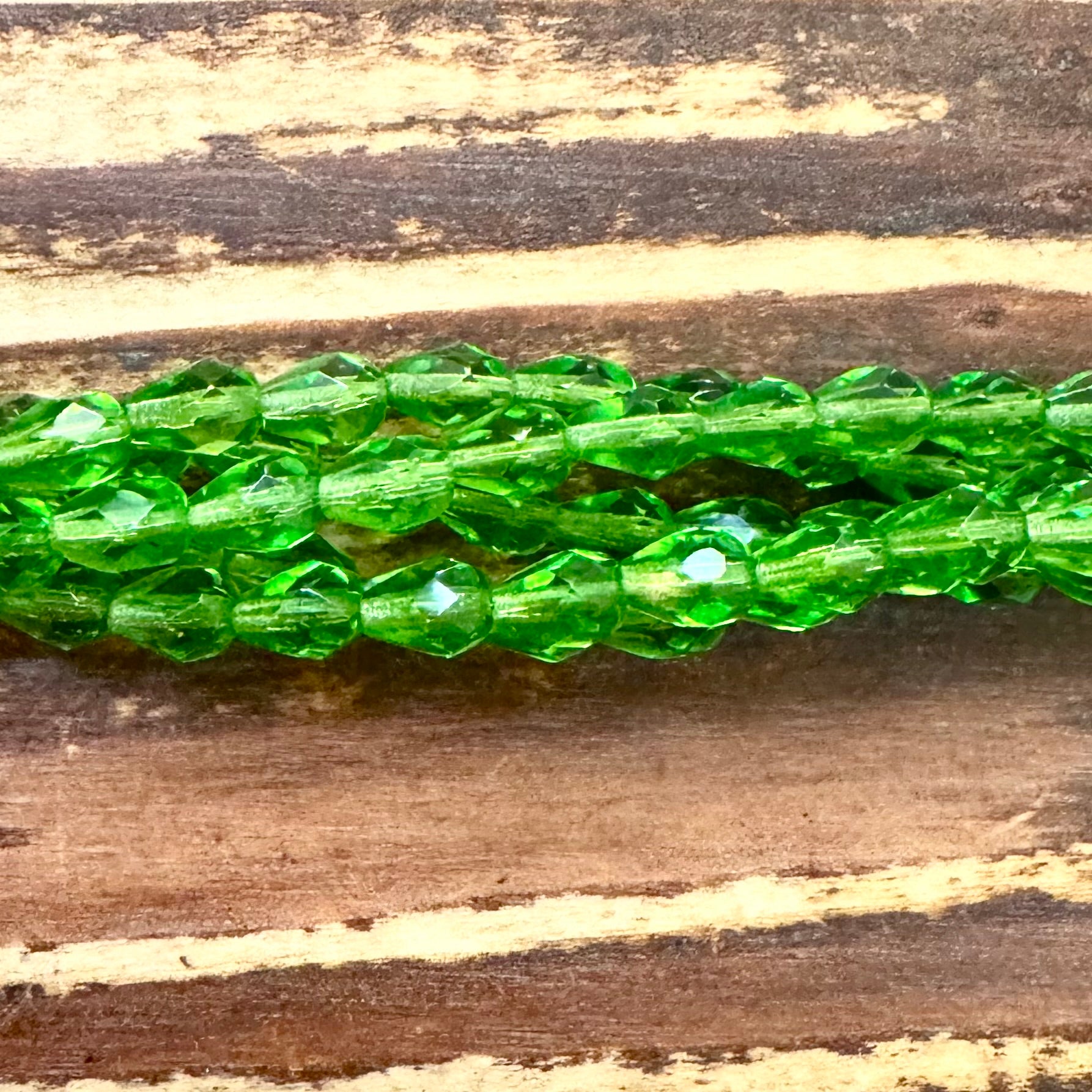 JKB-1011 - Czech Glass Faceted Teardop Bead, True Green, 4.5x7mm | Strand