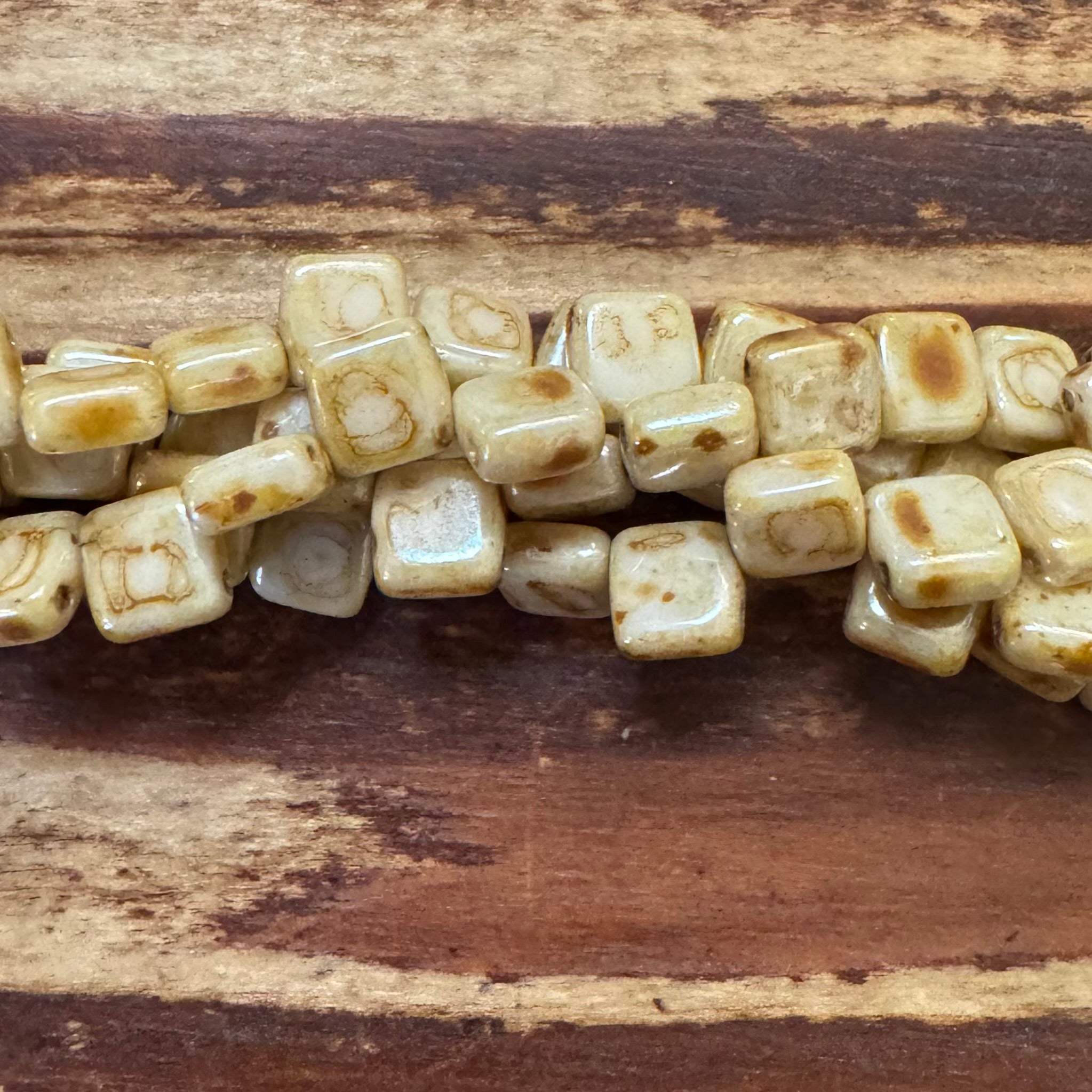 JKB-1031 - Czech Glass 2 Hole Tile Beads, Tan Picasso, 6mm | Strand