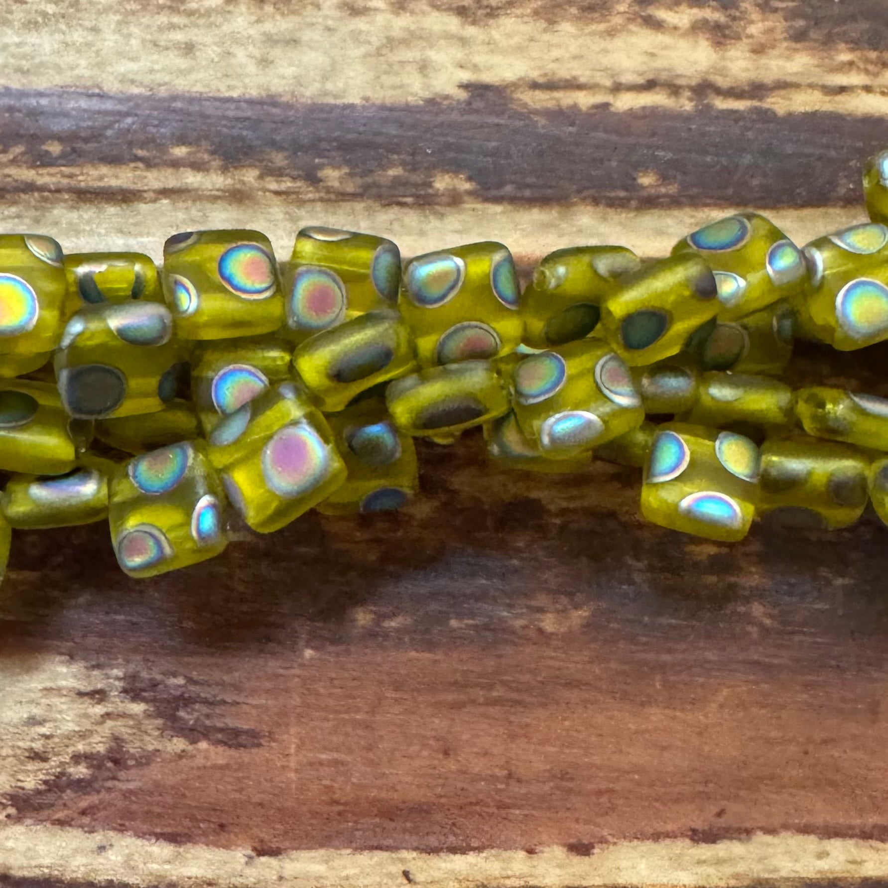JKB-1033 - Czech Glass 2 Hole Tile Beads, Chartreuse With Foil, 6mm | Strand