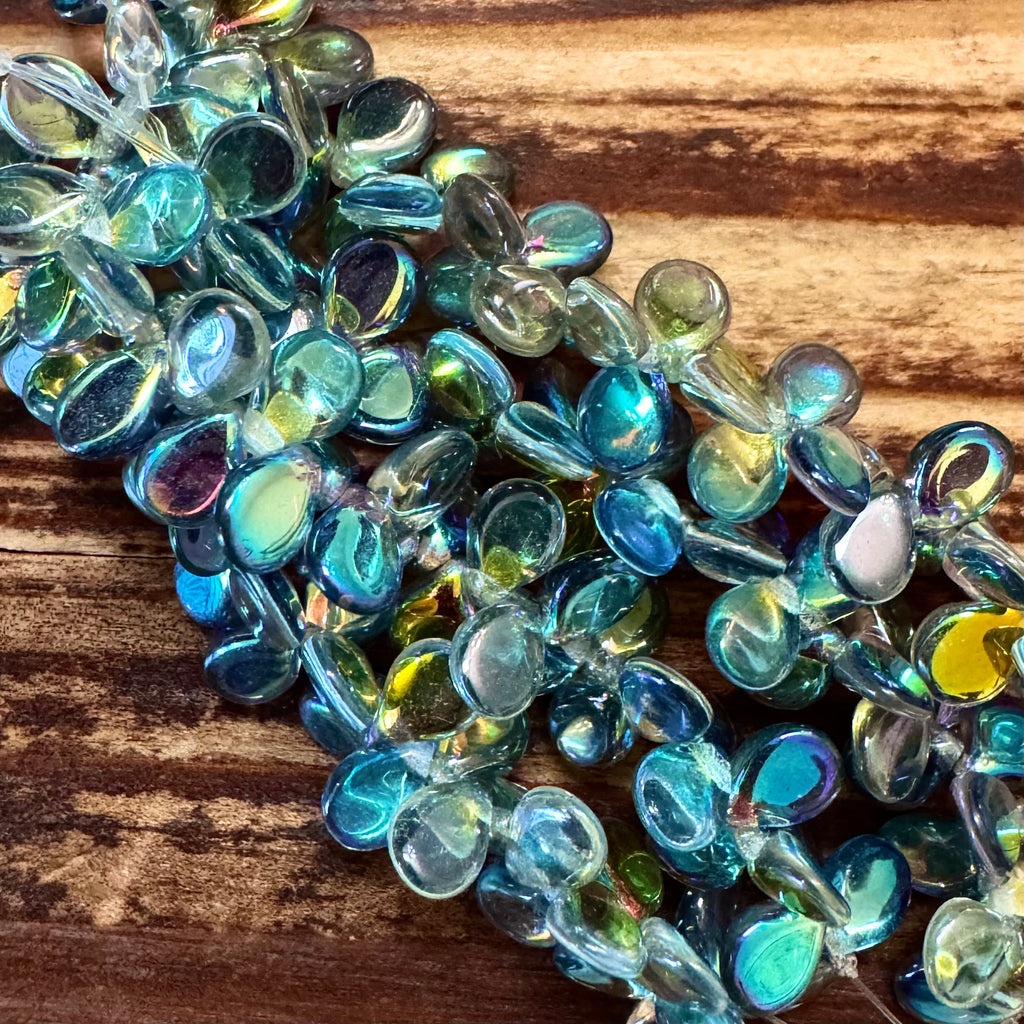 JKB-0944 - Czech Glass Teardrop Beads, Sea Blue AB, 5x7mm | Strand