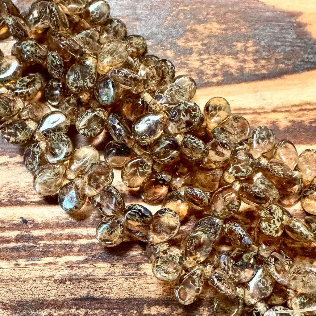 JKB-0994 - Czech Glass Teardrop Beads, Brown Picasso, 5x7mm | Strand