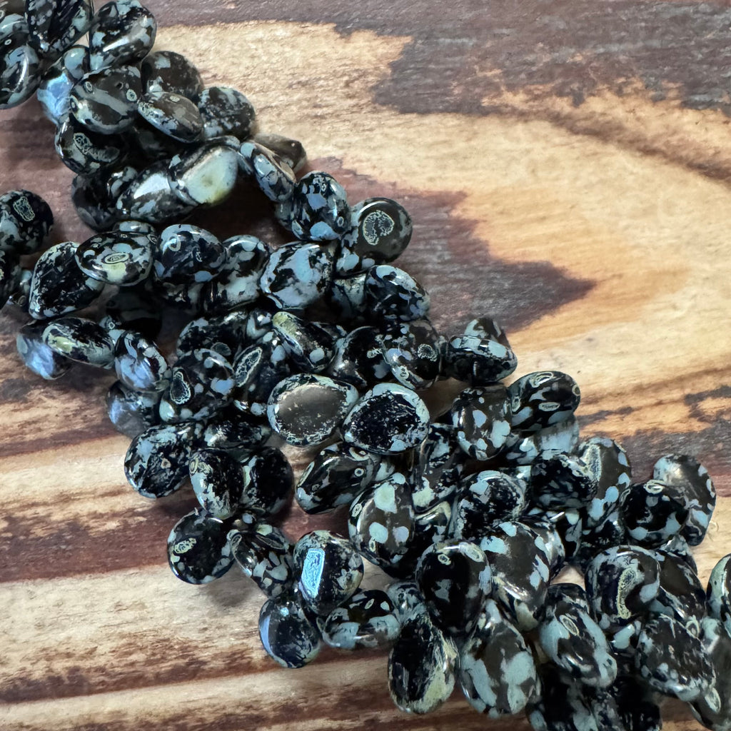 JKB-0948 - Czech Glass Teardrop Beads, Jet Picasso, 5x7mm | Strand