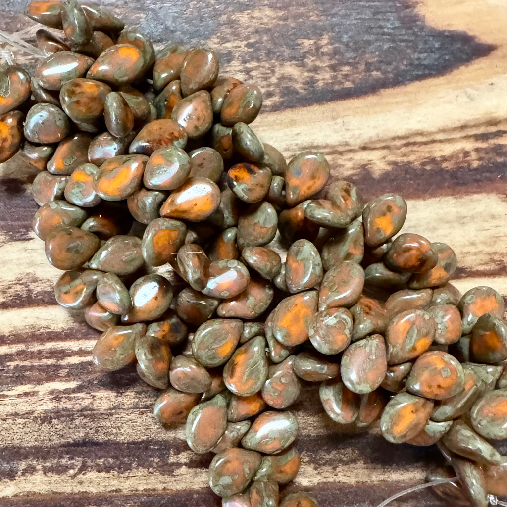 JKB-0962 - Czech Glass Teardrop Beads, Burnt Orange Picasso, 5x7mm | Strand