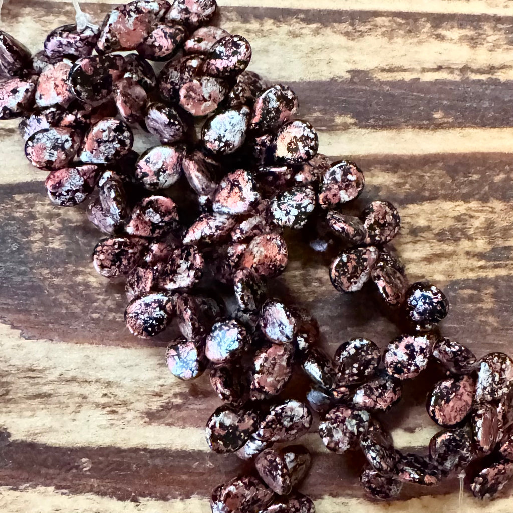 JKB-0936 - Czech Glass Teardrop Beads, Pine Picasso, 5x7mm | Strand