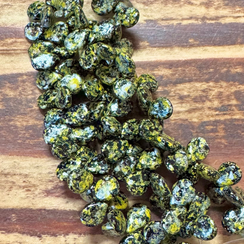 JKB-0977 - Czech Glass Teardrop Beads, Black/Silver/Yellow, 5x7mm | Strand