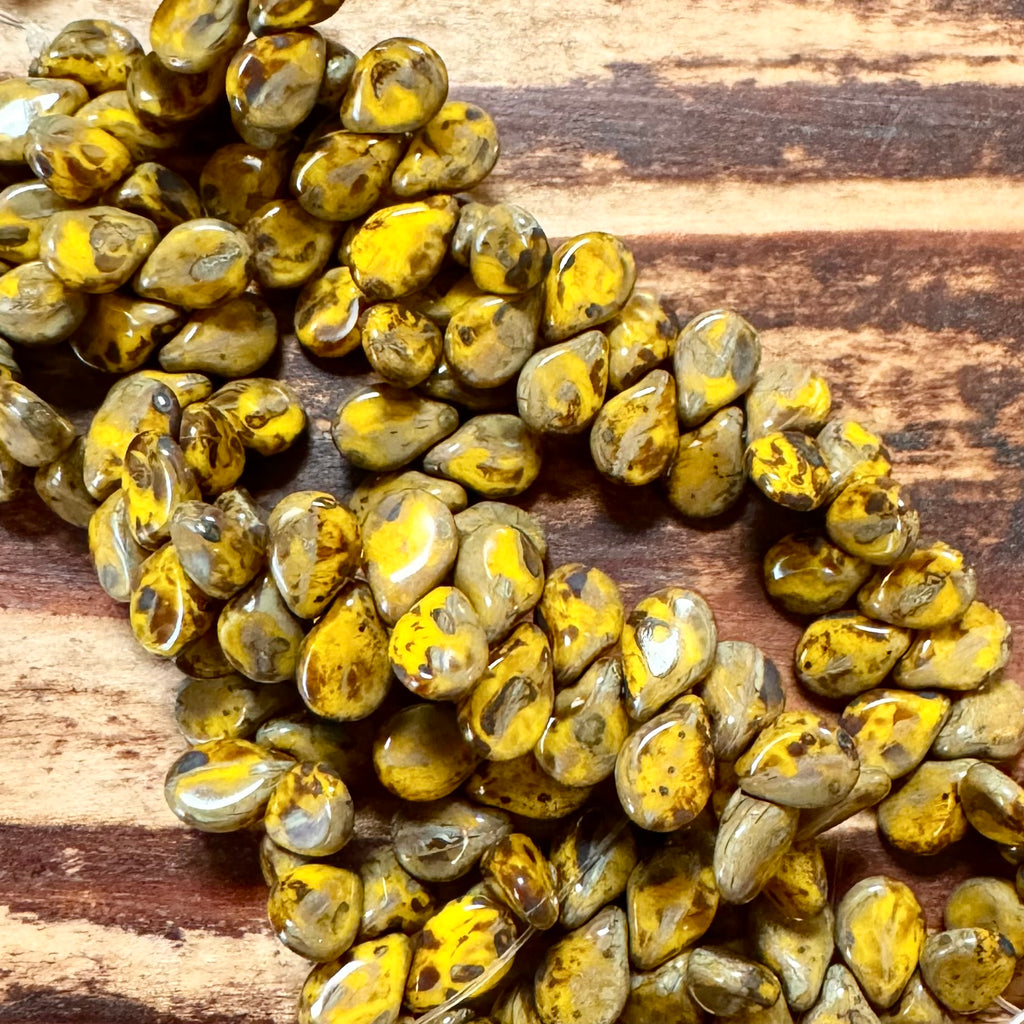 JKB-0978 - Czech Glass Teardrop Beads, Dark Yellow Picasso, 5x7mm | Strand