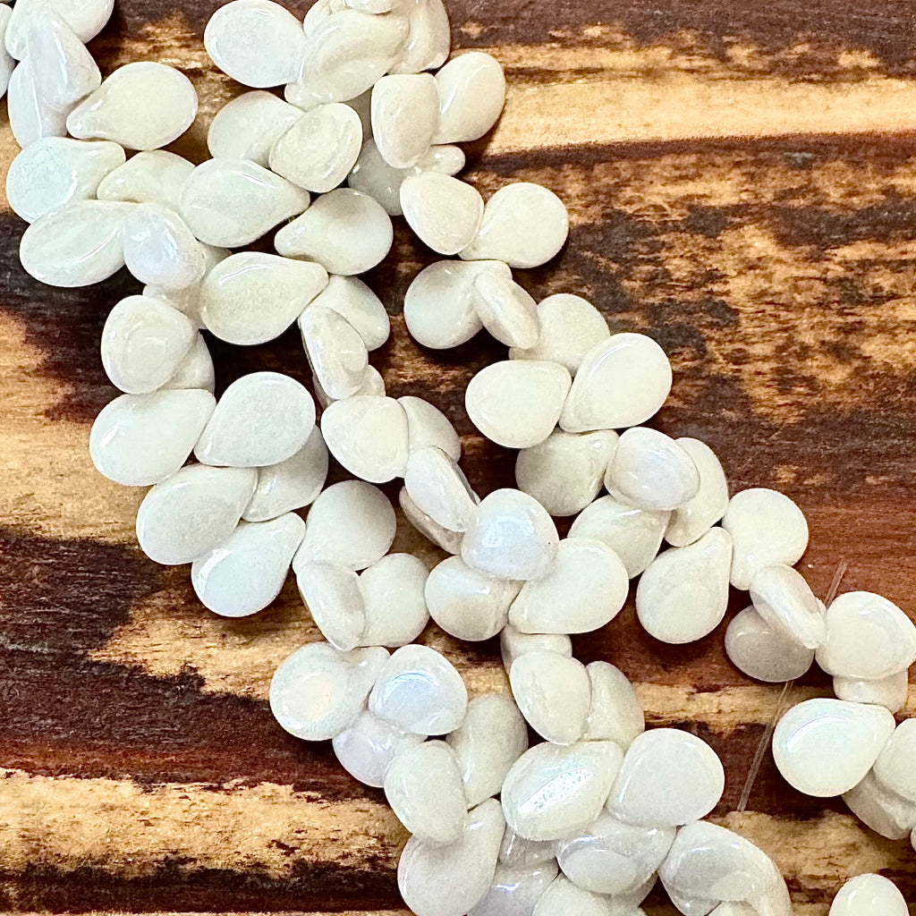 JKB-0983 - Czech Glass Teardrop Beads, White Satin, 5x7mm | Strand