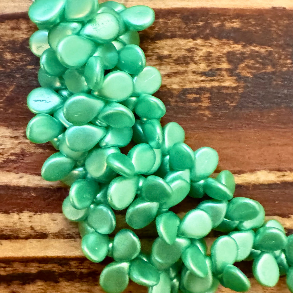 JKB-0991 - Czech Glass Teardrop Beads, Vibrant Green, 5x7mm | Strand