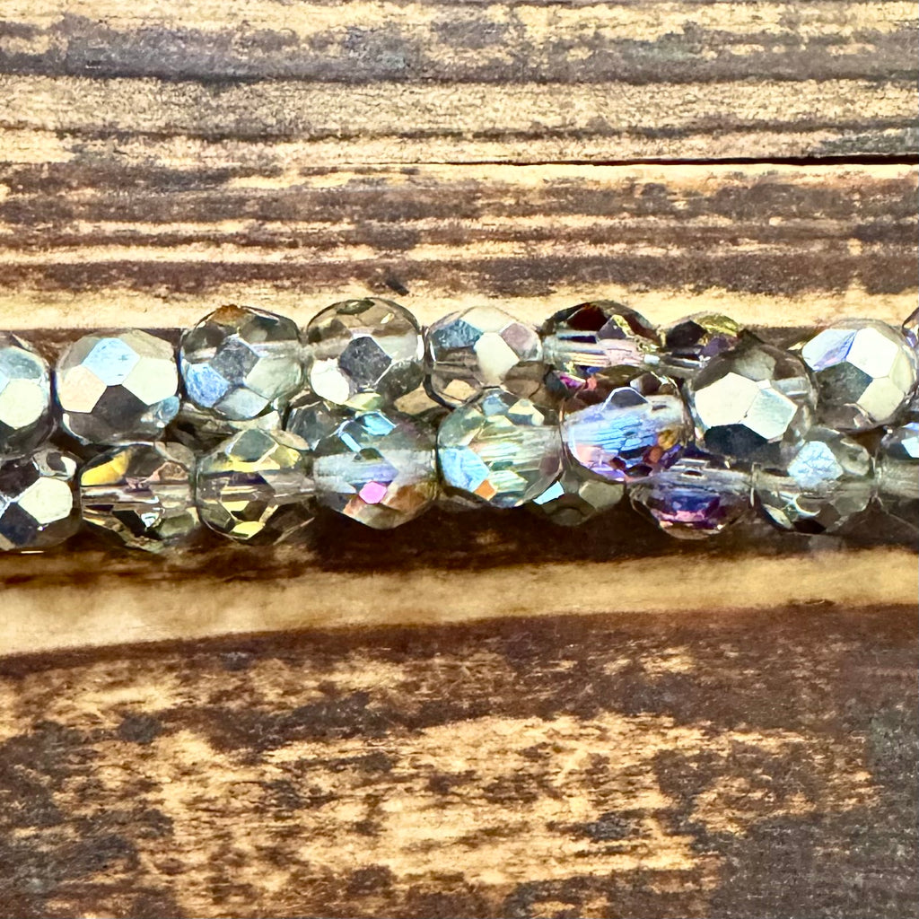 JKB-1016 - Czech Glass Fire Polish Beads, Crystal Marea, 7mm | Strand