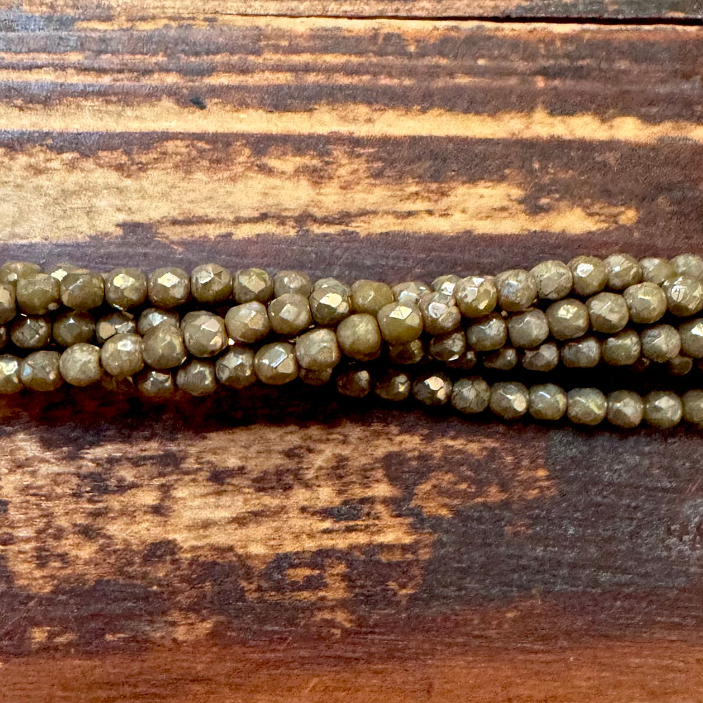 JK-9770 - Czech Glass Bicone Beads, Opaque Olive, 6mm | Strand